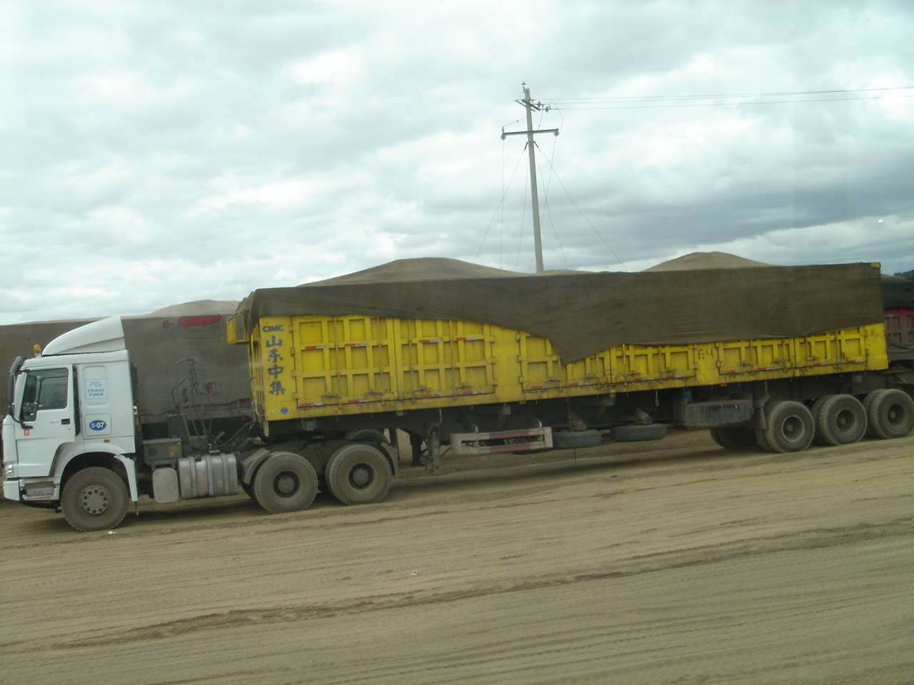掘り出した石炭を載せた大型トラックが中国国境を目指します。