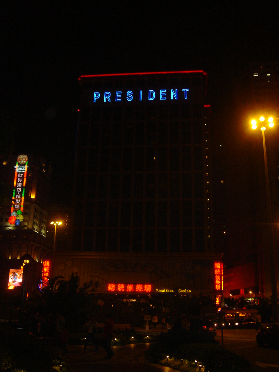 そして、リスボアホテル(葡京酒店)前から道路の向こう側に見えるウインに行こうとしましたが、亜馬喇前地のバス停までは行けても、そこから先は通路がなく進めません(汗)。付近を30分くらい行ったり来たりしました。そして、総統酒店の前まで来て、とうとう友誼大馬路を渡る横断歩道を発見しましたが、滅茶苦茶疲れました。本当、初めてのときは勝手が分からず、ちょっとしたことに物凄い時間と労力を要する場合があります。財神酒店の前から地下駐車場を経由してウインに行くようになるのは、まだ先のことです。
