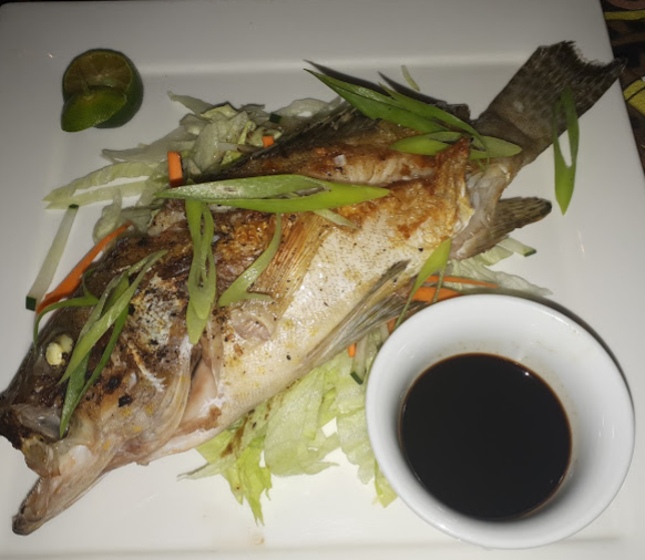 ラプラプに似た魚を持ってきてくれたので、それらを2匹。スチームとグリル。また、青菜の炒めと、、、、、デザートのプリンまで入れて、大満足。全部で1000PHPちょっと。
