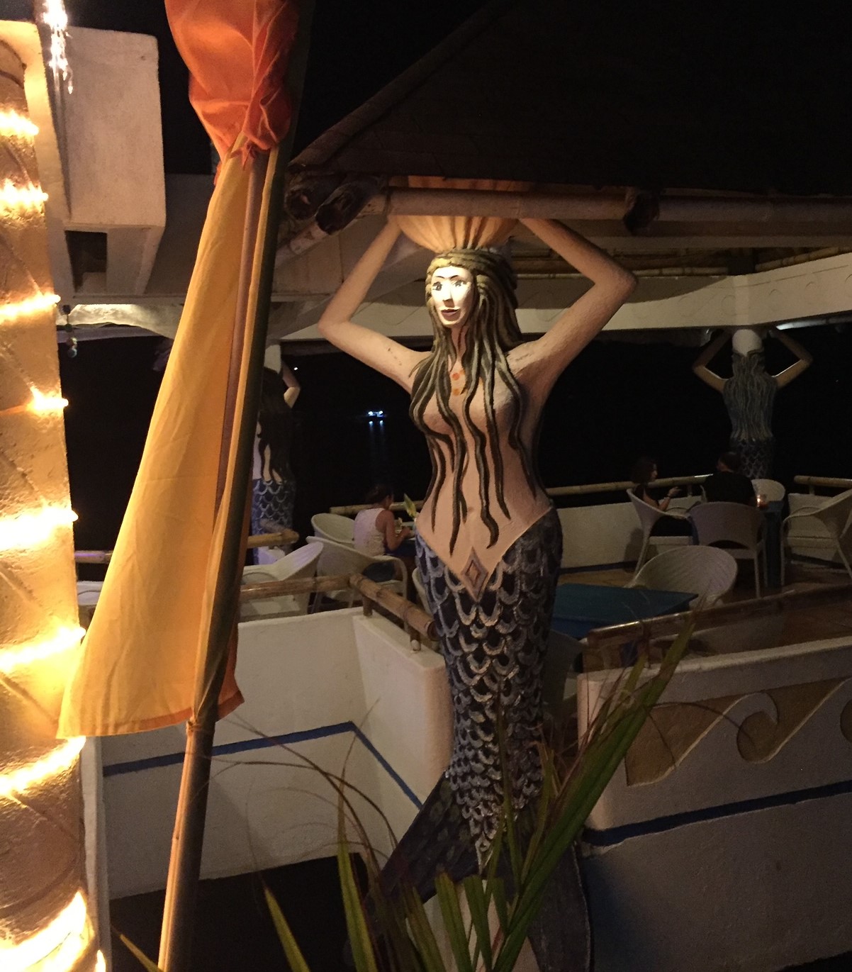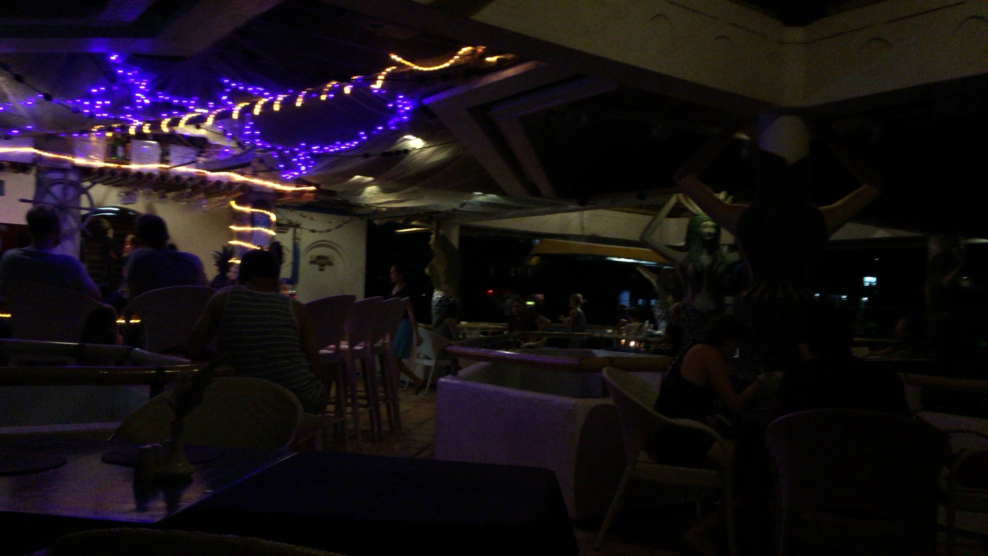 GOOGLEで見ると、ん?海の中に1件のレストランが。名前を見ると・・SeaFood と書いてあります。ここよさげなので行ってみましょう!と無理やり友人をつれて、ほぼ明かりがない民家の間を通りながら海側に出ていきます。すると、木でできた危なっかしい橋が海に掛けられていて、奥に明かりが見えます。海の上にレストランを作っちゃってます。