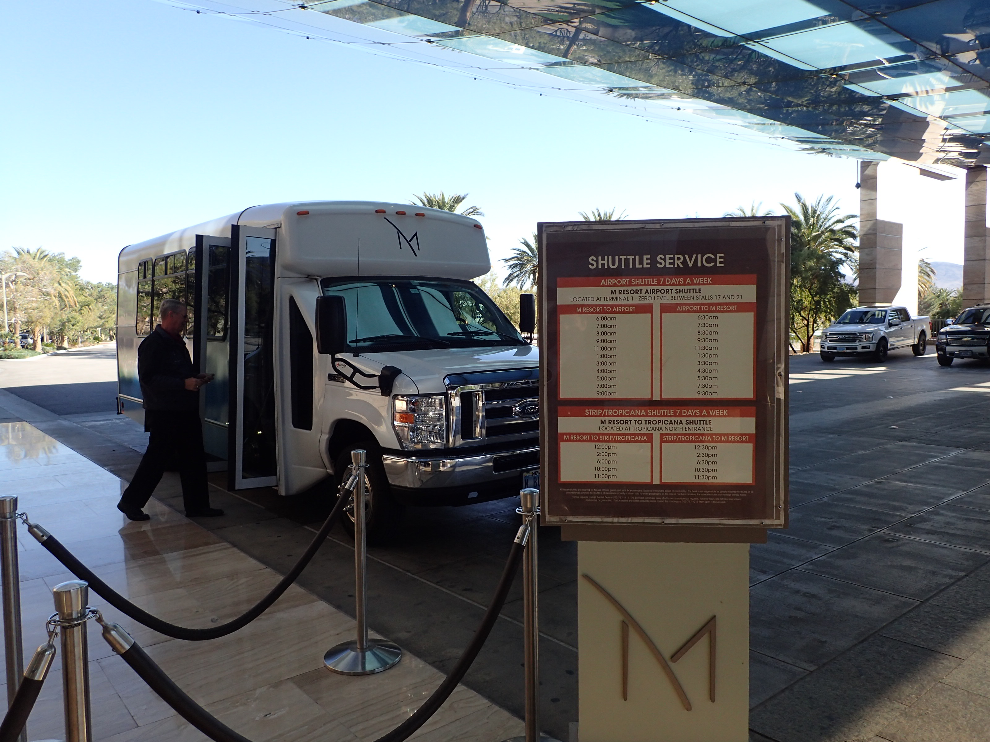 ラスベガス・マッカラン空港に到着後、このMリゾートは定期的に空港⇔ホテル間の無料シャトルバスを出してくれてます。
