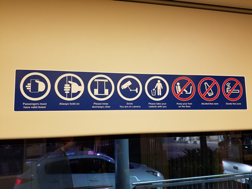 トラムの案内は、下に向かって走る。