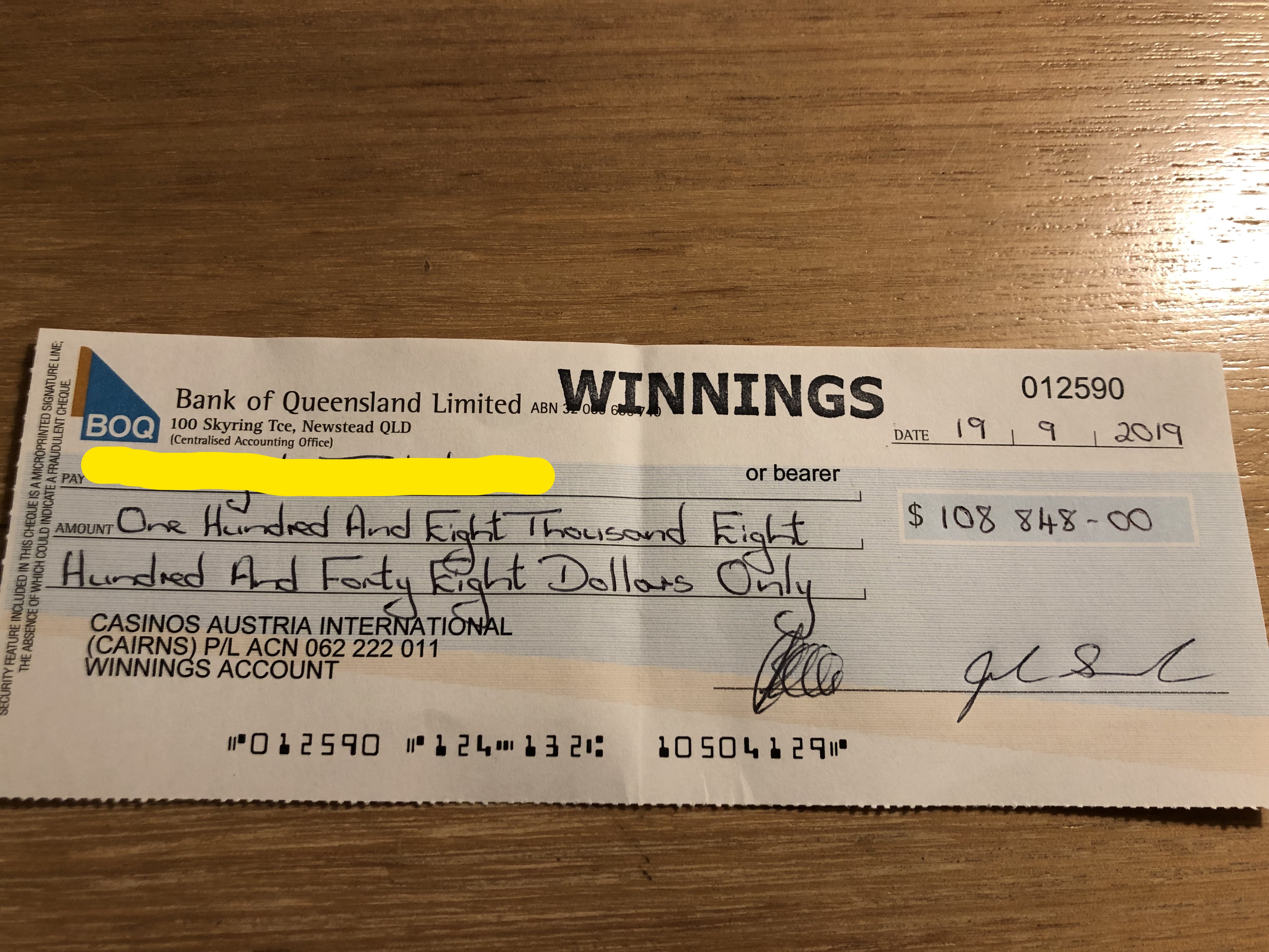 僕は豪では銀行口座は持っていなく、WINNING小切手は勝ち分のカジノ間の移動媒体として使っています。