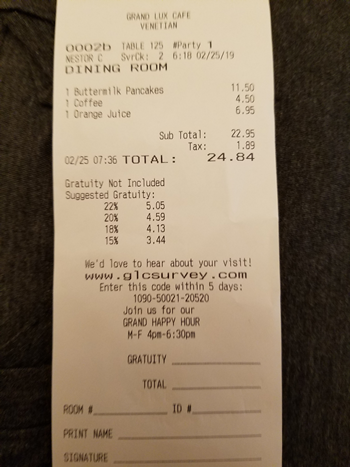 USD 6.95。おかわり出来ません。2杯飲んだら料金も2倍です。