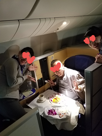 機内にも関わらず、4人のCAによるhappy birthday の合唱。