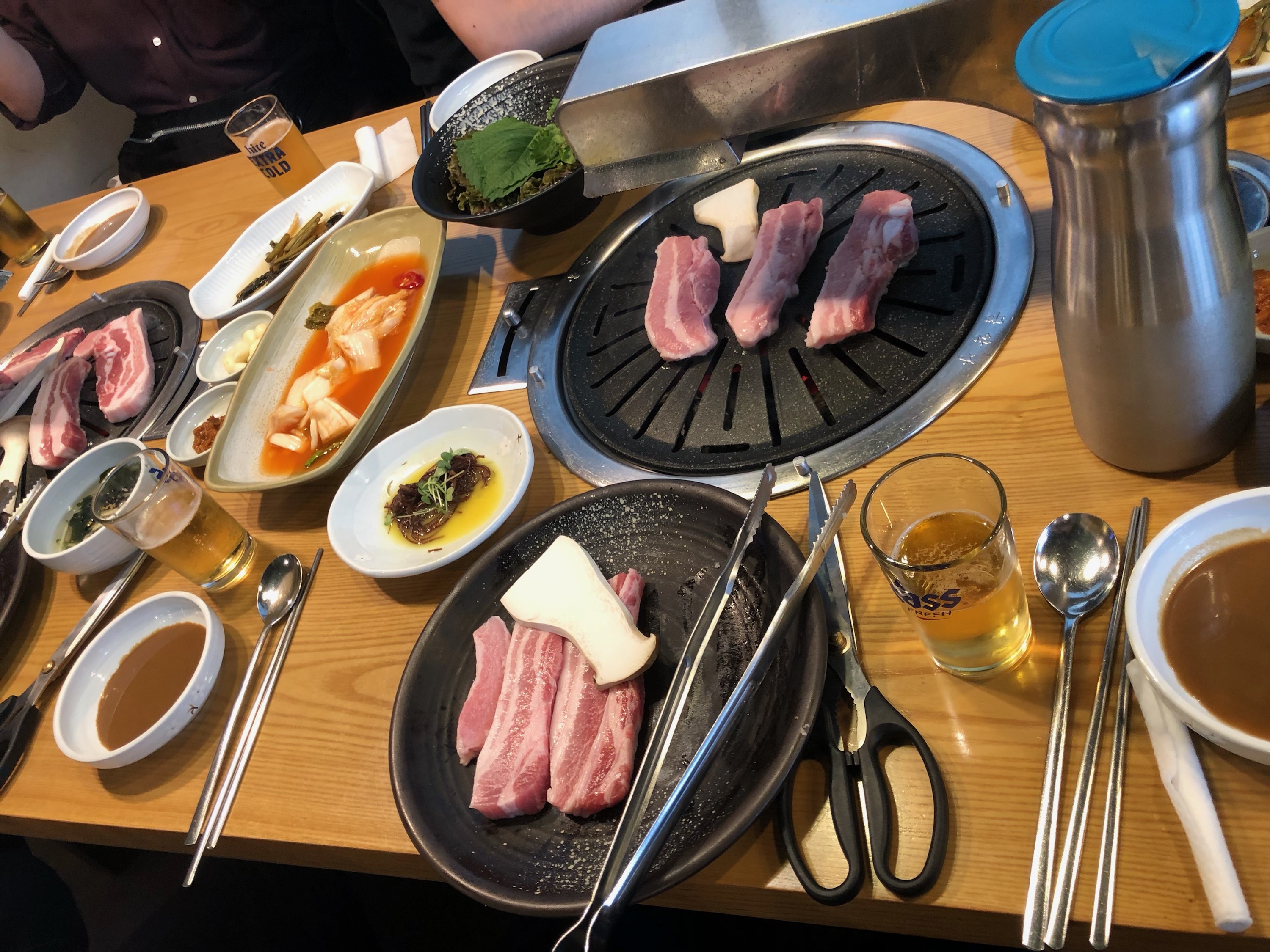 食事会はいつもの焼き肉屋、豚肉と牛カルビをたらふくいただいた後は、ビビンバと冷麺からチョイス。相当酔っ払ってきました(←大会前だというのに、こういうところは無防備です。はい。)