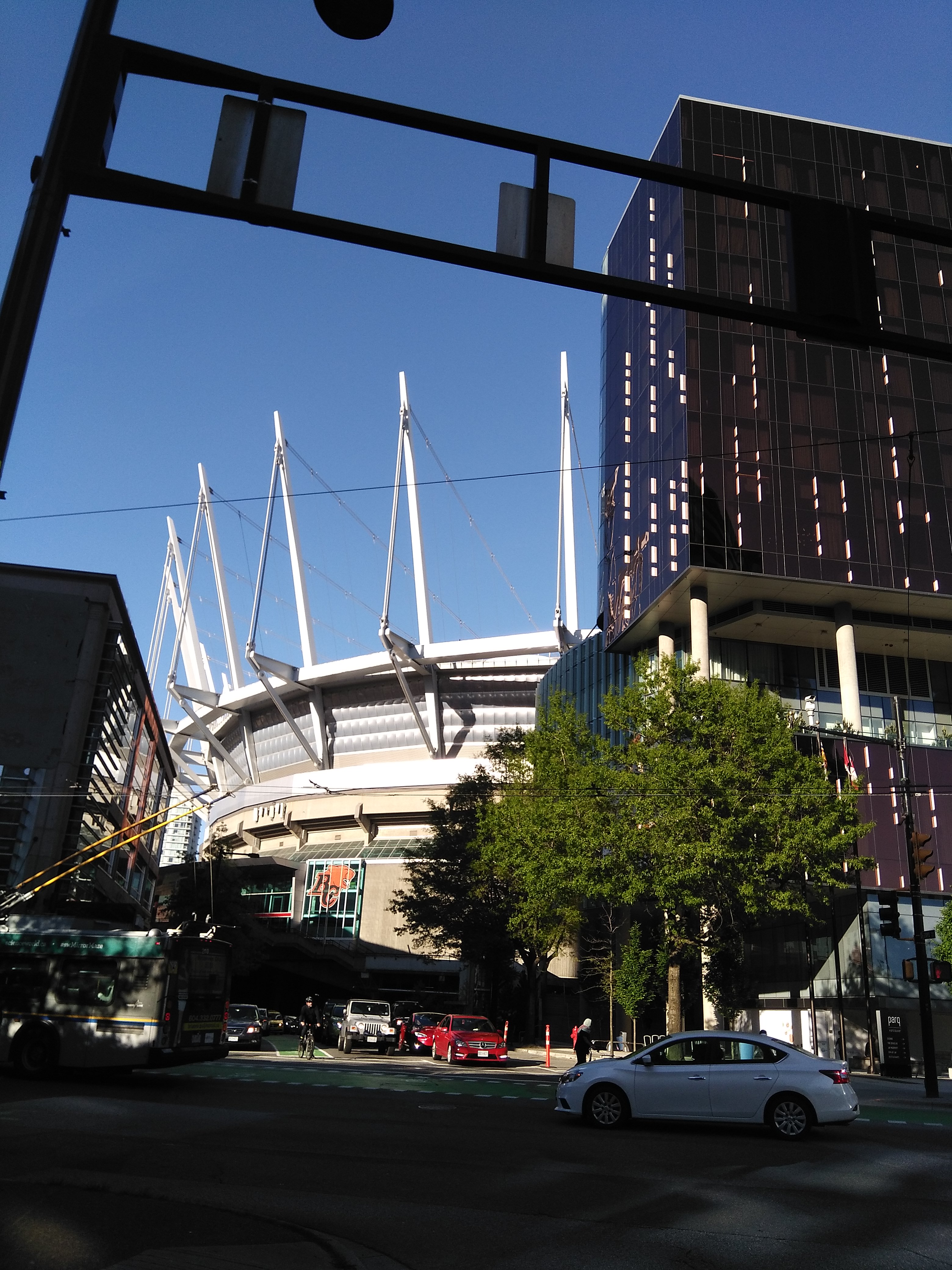 羽田からのANA便で午後到着、ダウンタウンのホテルにチェックイン後、時差ボケにもめげず早速PARQを見に行くことにする。 バンクーバーは大きな都市ではない。郊外の大学やライオンズゲートブリッジを渡るノースバンクーバーへ行く用がなければ、ダウンタウン内移動は徒歩かスカイトレインでどこへでも行ける。