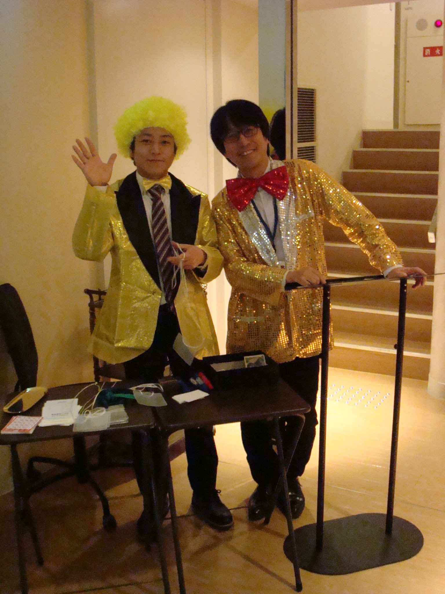 同じタイミングで複数人のビンゴが成立した場合は、テーブルに伏せて並べたカードから1枚を引いて、数の大きい人が良い景品を貰うというシステムのため、勝てば景品は航空券だが、負ければフラッシュメモリーになるといったケースもあり、このカード引きでもたいへん盛り上がりました。