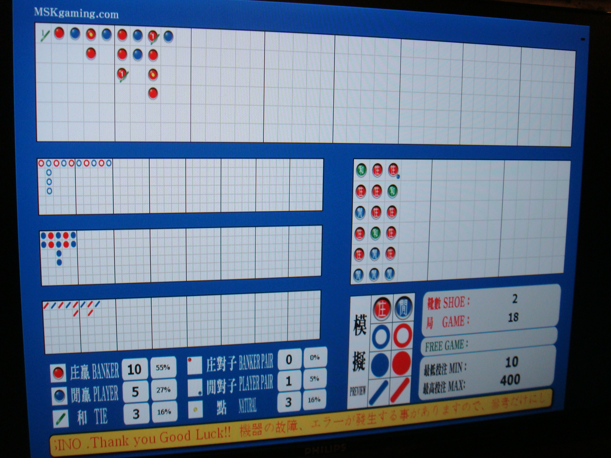 100÷6で15ドルからスタートしました。3連勝で勢いに乗り、最終ゲームもバンカーに賭け、オールインしましたが負けて、チップはゼロになりました。まあ、やるべきことはやったので仕方ありません。