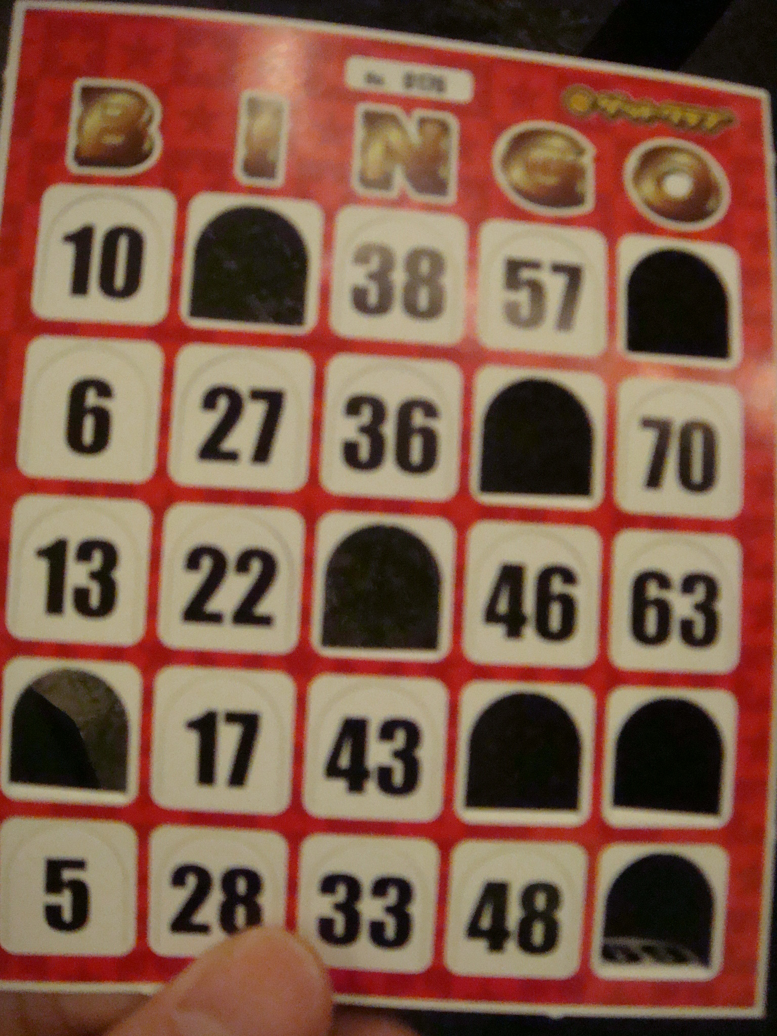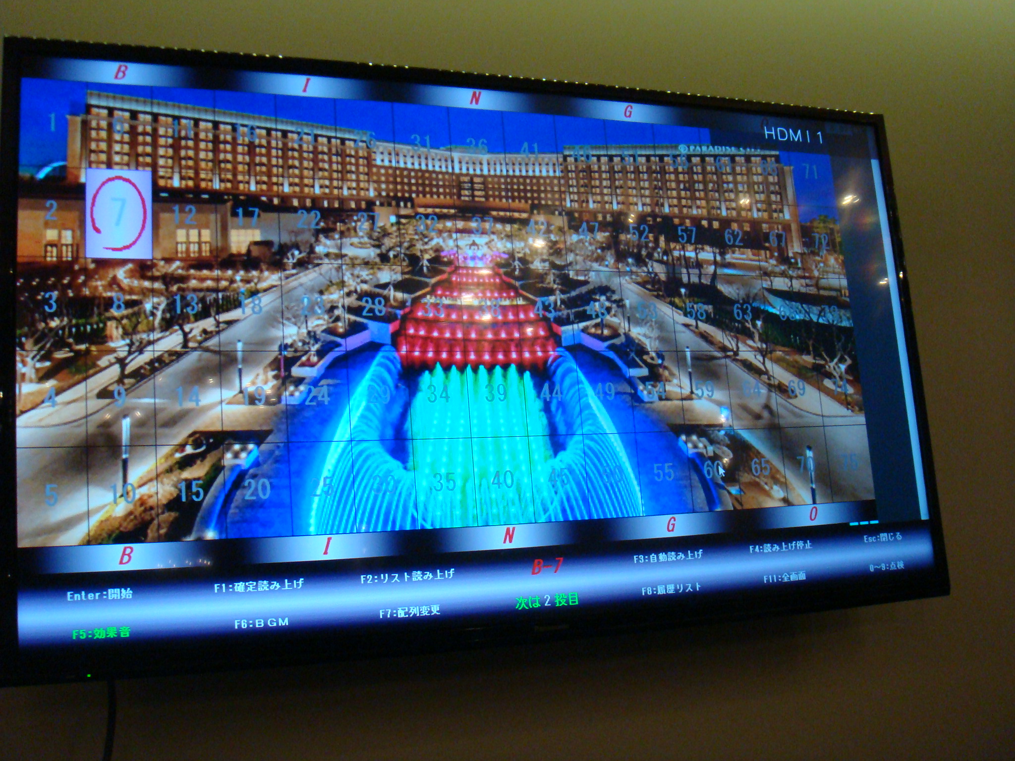 ビンゴは、番号が音声と同時に前のモニターでも表示されました。