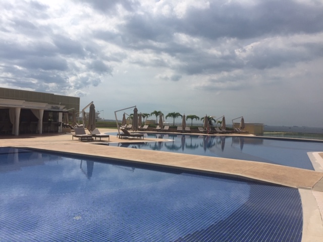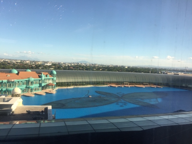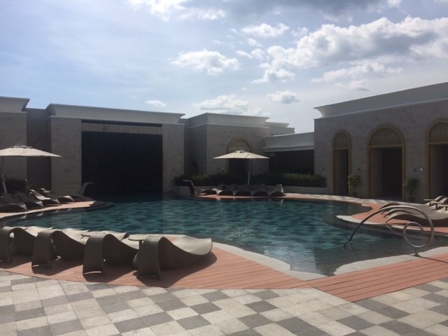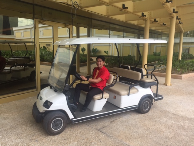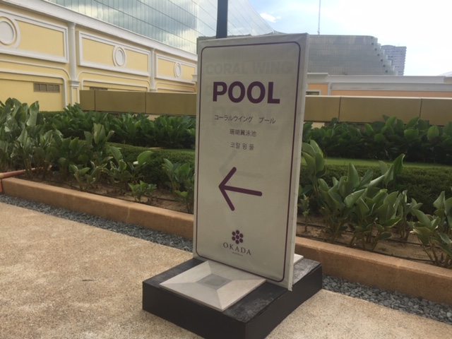 まだすべての工事が終わっていないので、プールに直接行ける側からのアクセスがまだみたいで、ルーフガーデン?部分にでる出口の外に、スタッフがカートに乗って待ってます。