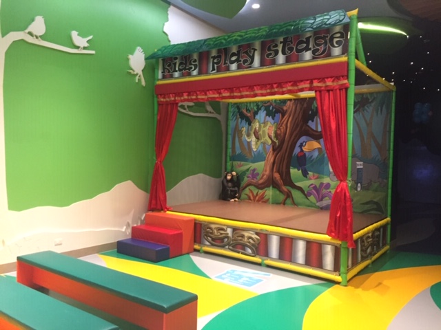 滑り台、ジャングルジムあり、ステージがあって、スタッフのお兄さんお姉さんとそこで