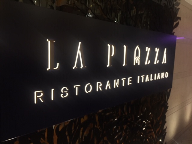 夜ご飯は、ファウンテン沿いの“LA PIAZZA”イタリアンです。