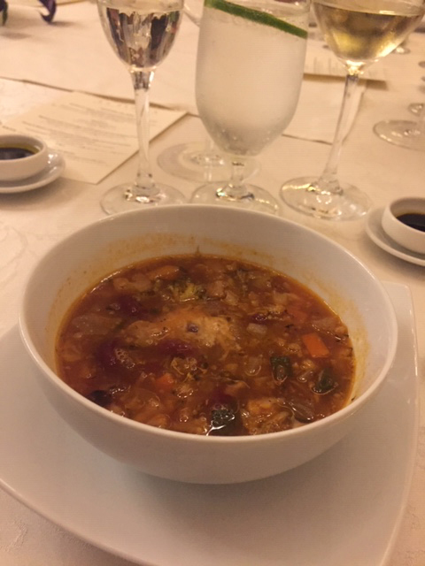 おいしいイタリアンを頂きます。19:00になると轟音と共に噴水ショーが。。