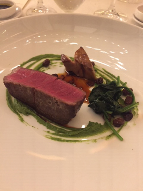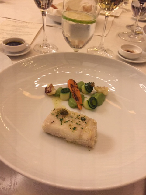すごい量のワインセラーを見ながら奥に通されます。ファウンテン沿いの部屋に通されて