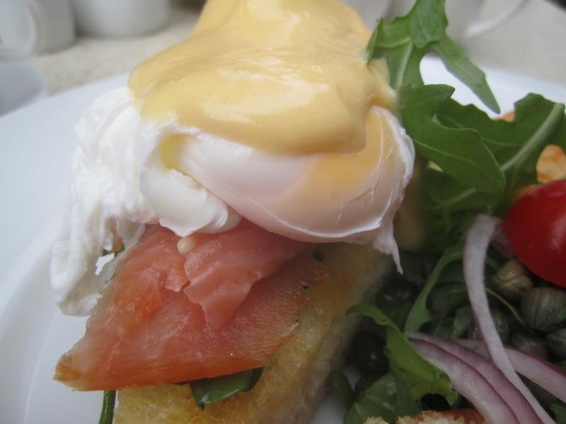 帰国の日の朝ご飯はサーモン・ベネディクトをいただきました。