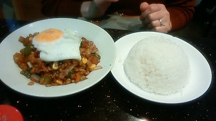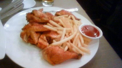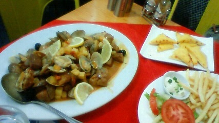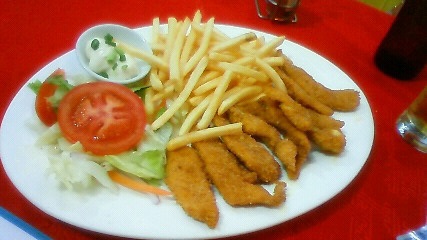 メインは定番の豚肉とアサリ炒め。あとはチキンフィンガーを頼みます。