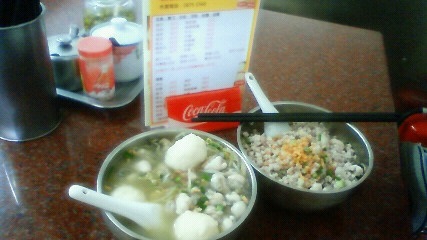 『新武二』に入ります。牡蠣魚丸米粉($43)、牡蠣肉労麺($45)。