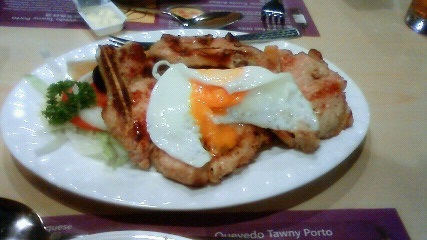 また、ポークチョップは豚肉の旨さを再認識させてくれて最近のお気に入り。上に乗ってる目玉焼きがまた良し。