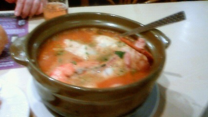 海鮮鍋を皿に取ったらそこにオリーブオイルとタバスコをぶっかけるだけ!