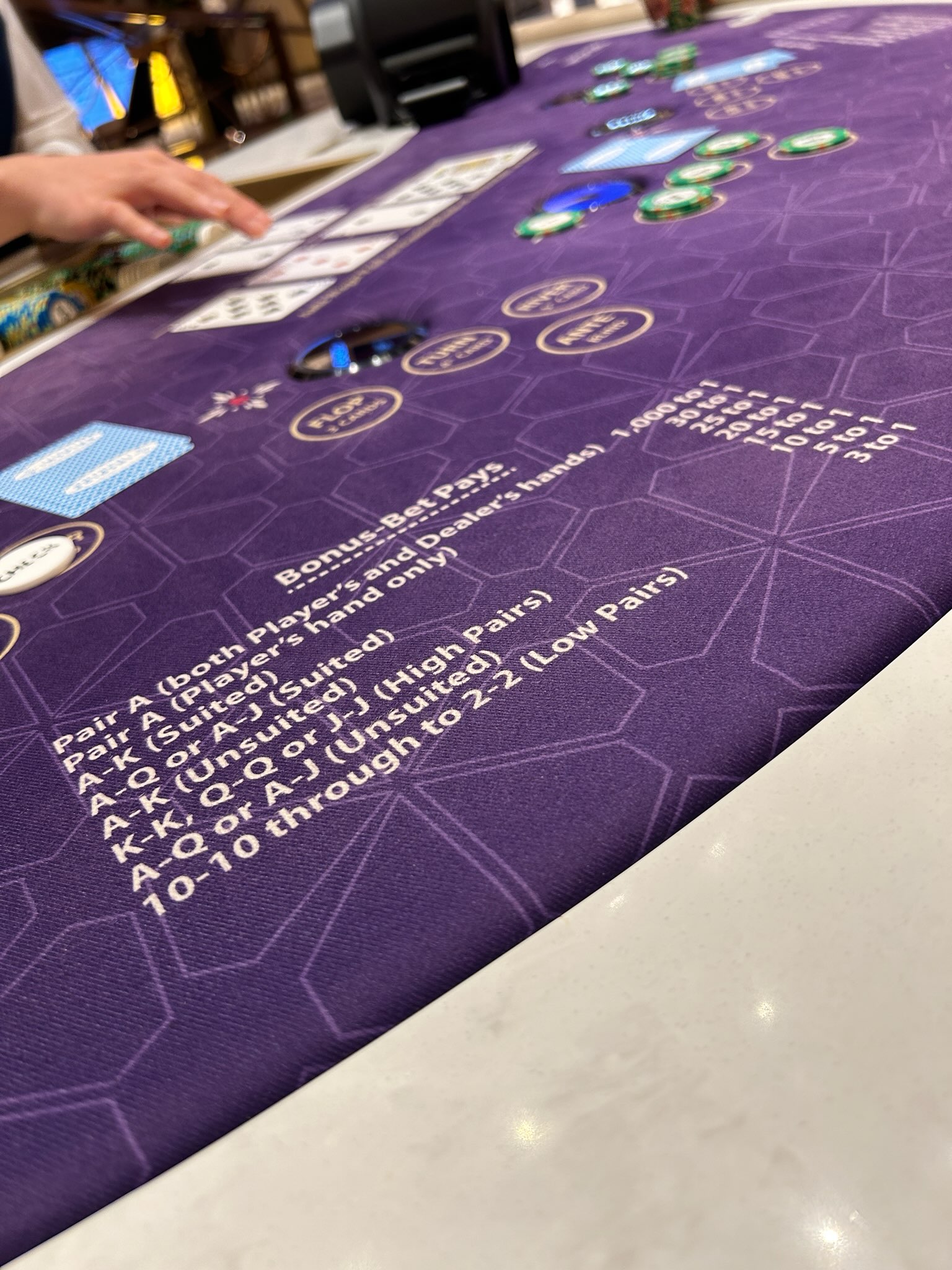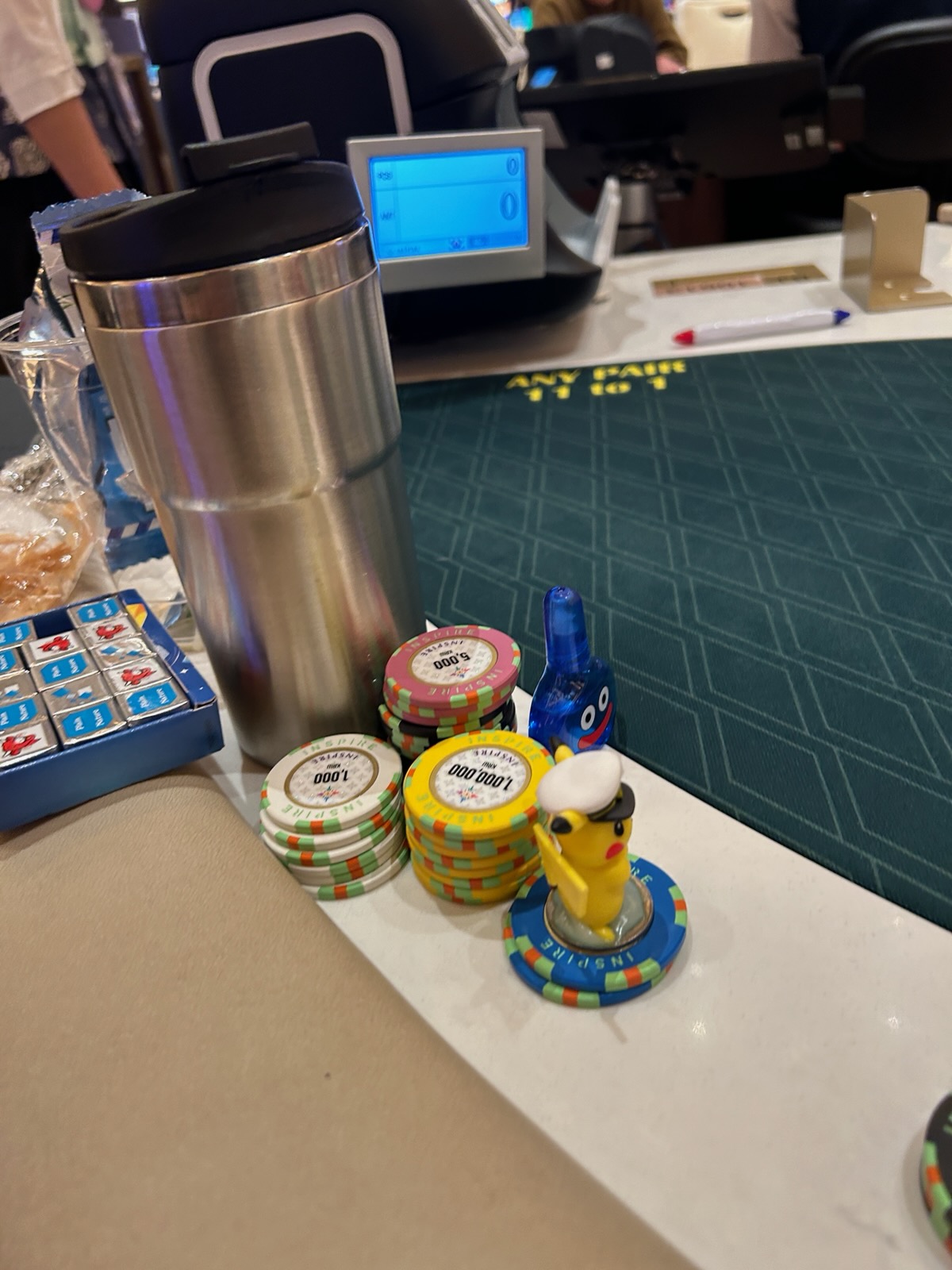カジノ側も慣れていないせいか、ディーラーがストレートなのに気付かず、ワンペアの我々に配当をしてくれました(嬉)。