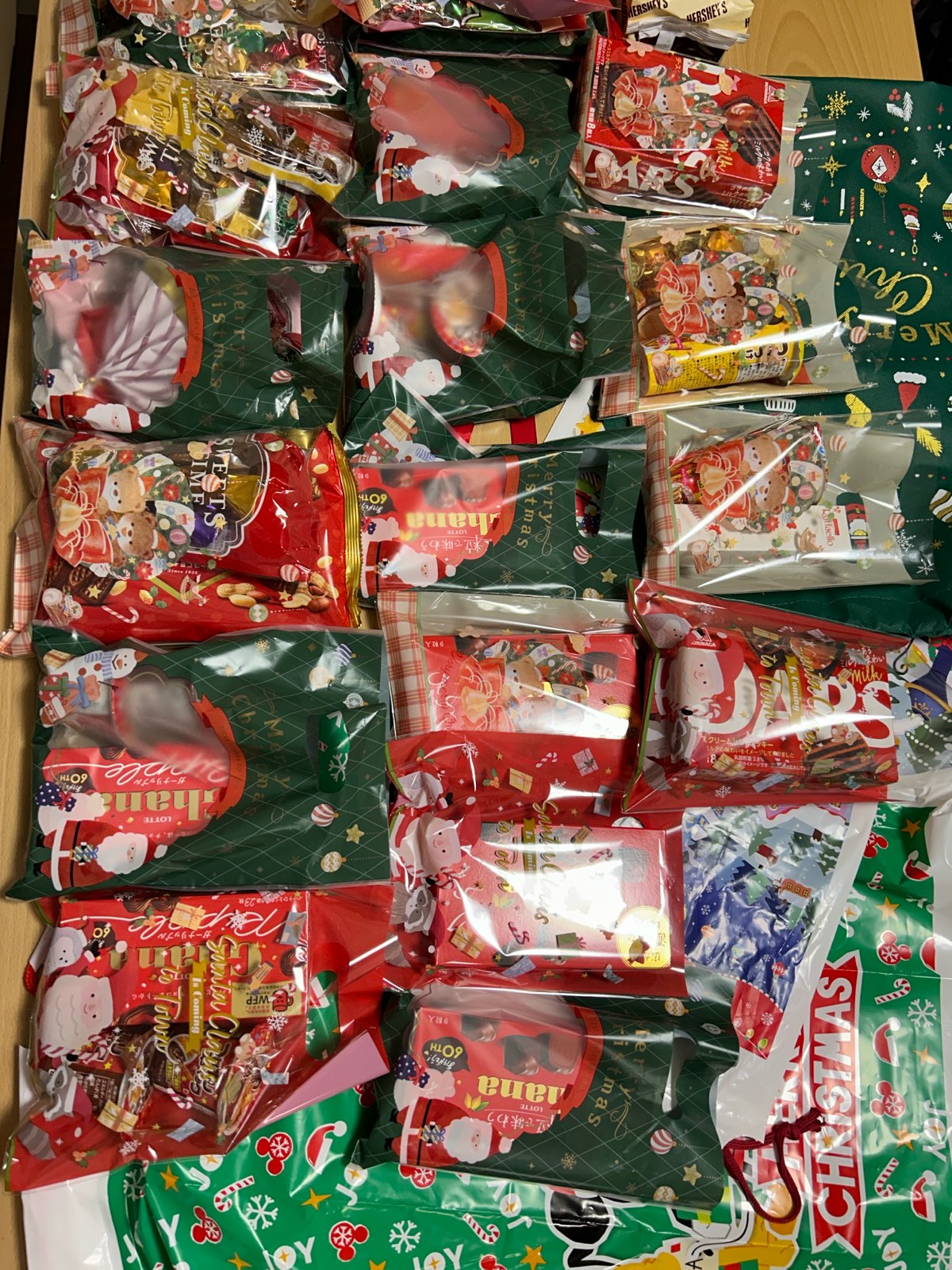 夕方からサンタになる予定でしたが、早番シフトの子には配付されないという不公平に気付き、急きょ昼サンタです!
