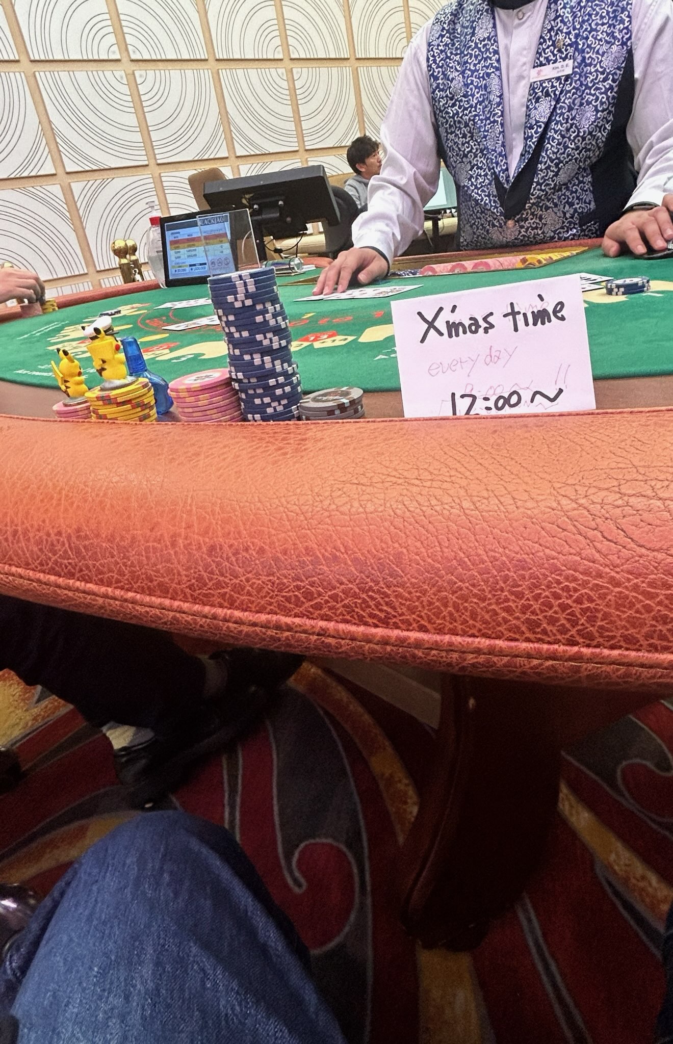 大邱カジノに行って、BJをしながら日本から持ち込んだチョコなどをバラ撒くという、まるで孫にお菓子をあげるような気持ちで、サンタ爺に扮してみました。
