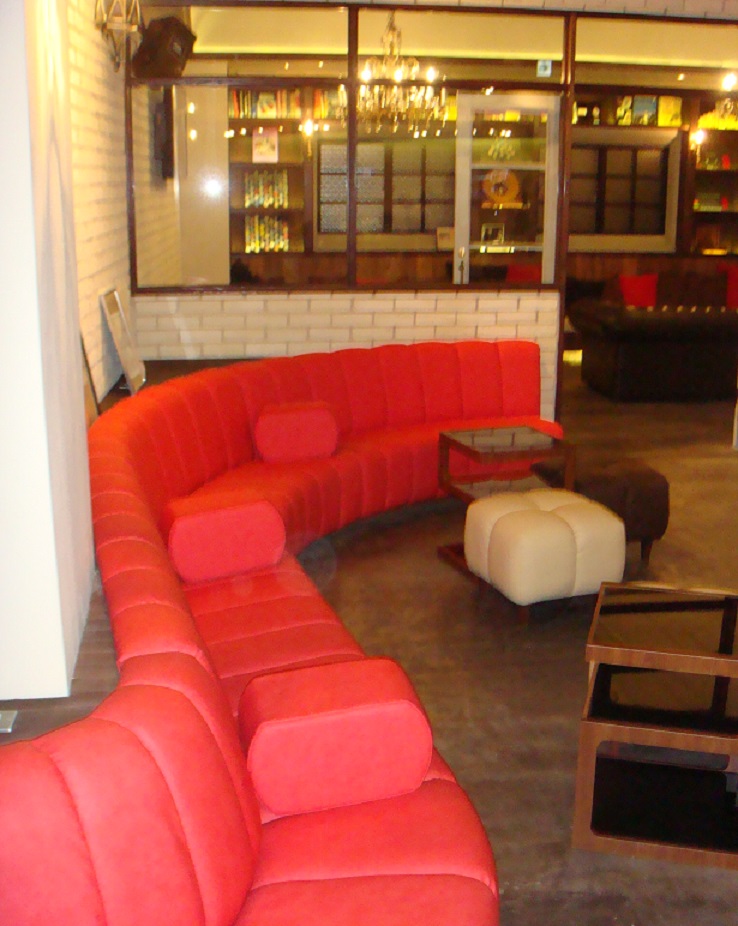 男性が2人居るので、片方に「マークさん?」と声をかけます。すると、その方がマークさんでした。で、しばらく2人でソファーでおしゃべり。
