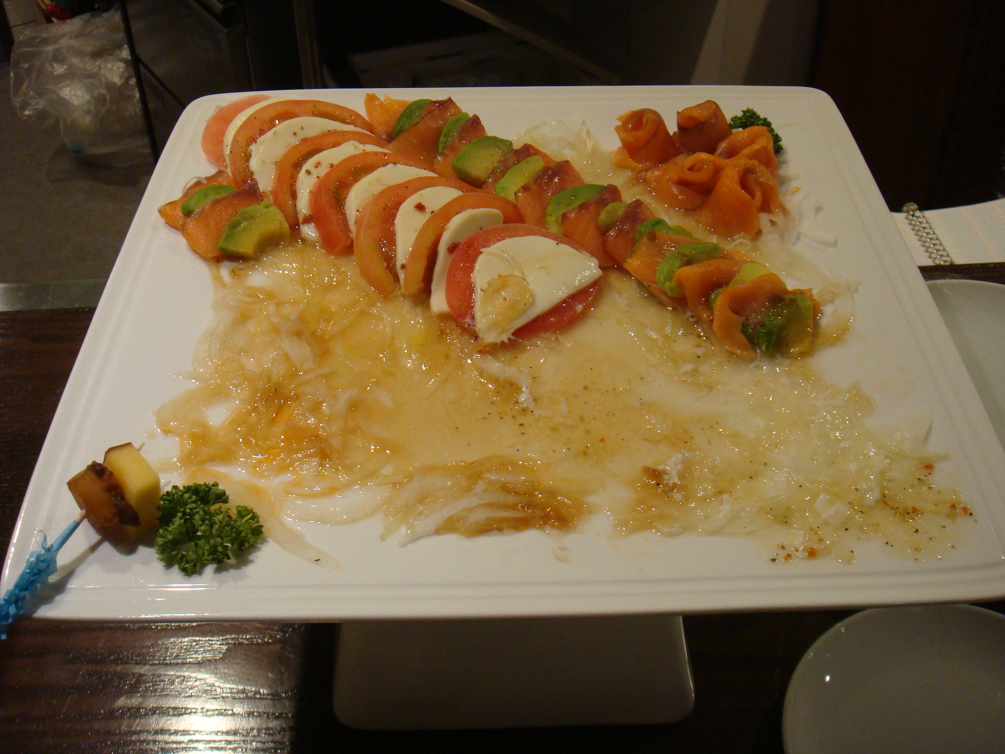 ビルの前の看板等の写真を撮り終え、エレベーターで4階に上がります。店の前に出されているメニュー表を見ていると、中からお客さんが出てきました。扉を開け、中に入ります。長いソファーに案内され、女性から説明を受けます。チップ100ドルにドリンク3杯が付いた4000円(+消費税)のコースを選択し、リゾカジ会員であることを告げました。すると、リゾカジ会員特典でチップが40ドル増量され、140ドルになりました。「ゲームは何をやりますか?」と聞かれたので「バカラをやります。」と答え、飲み物はオレンジジュースを注文しました。ハッピーアワーの19時30分を過ぎていましたが、カウンター上のお皿に盛られたピンチョスもいただくことができました。