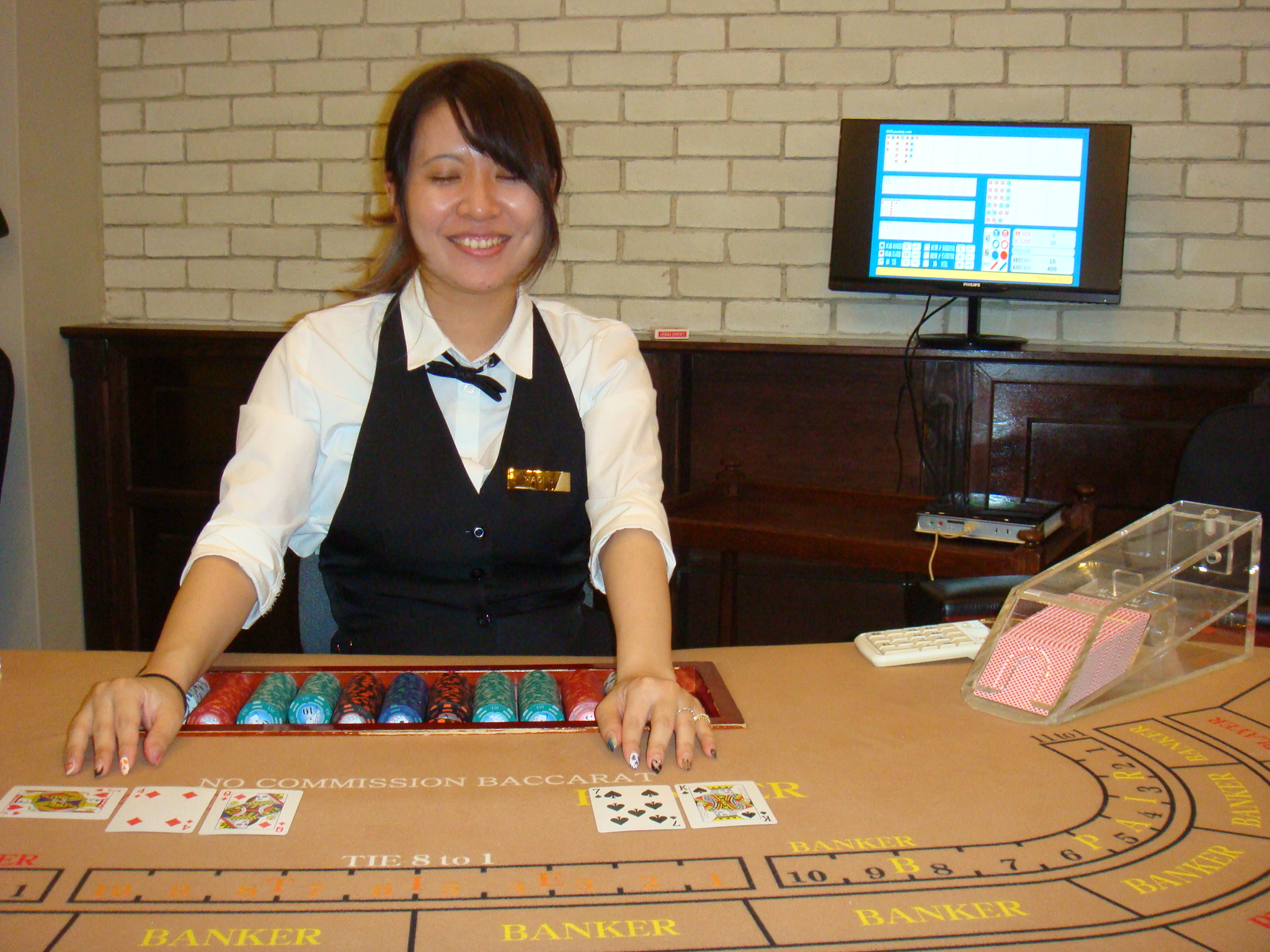IRCafeのディラーは、内外のカジノスクールで勉強をされた方達だそうです。放っていたらもっと話が続いていたと思いますが、女性ディーラーから「バカラの準備ができてますよ」と促され、ようやくゲームテーブルへ移動しました。