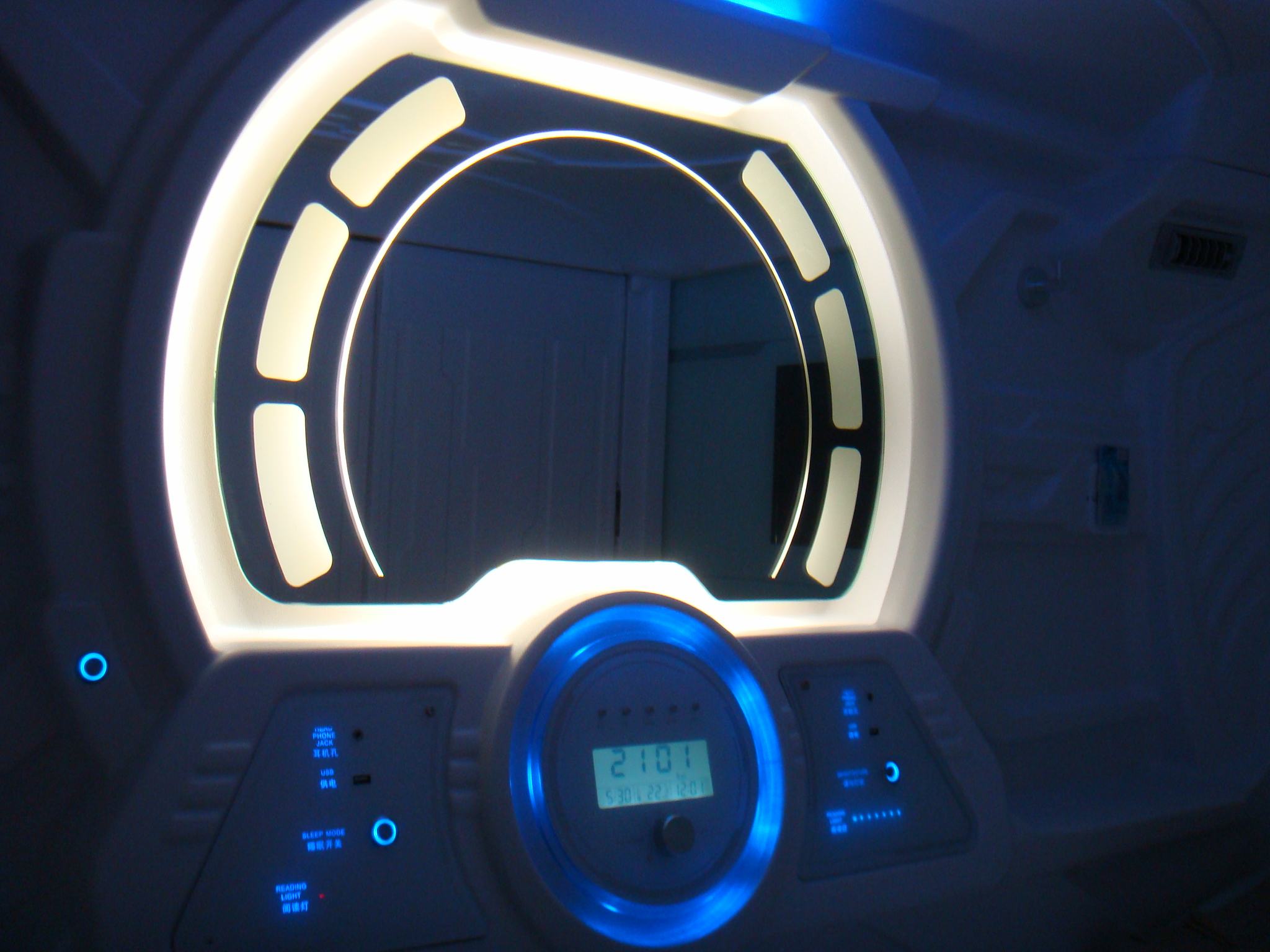 さて、ホテル内では隣のaus-run1990さんのカプセルは問題ないのに、私の15番カプセルは何度やっても室内灯がつきません。aus-run1990さんがやっても、店員がやっても駄目で、上段の13番カプセルに移動決定。