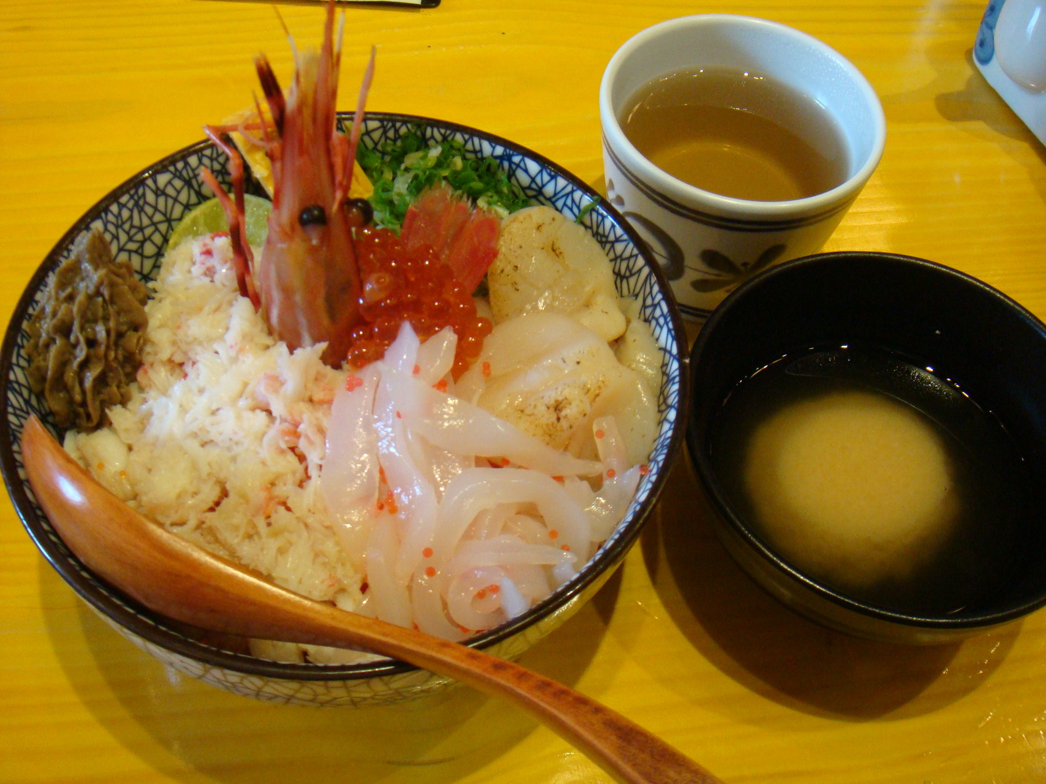 結局、歩き回る中で見つけた「漁兵衛」という店で牡丹蝦蟹肉干貝丼(198バタカ+10%服務費)を食べました。