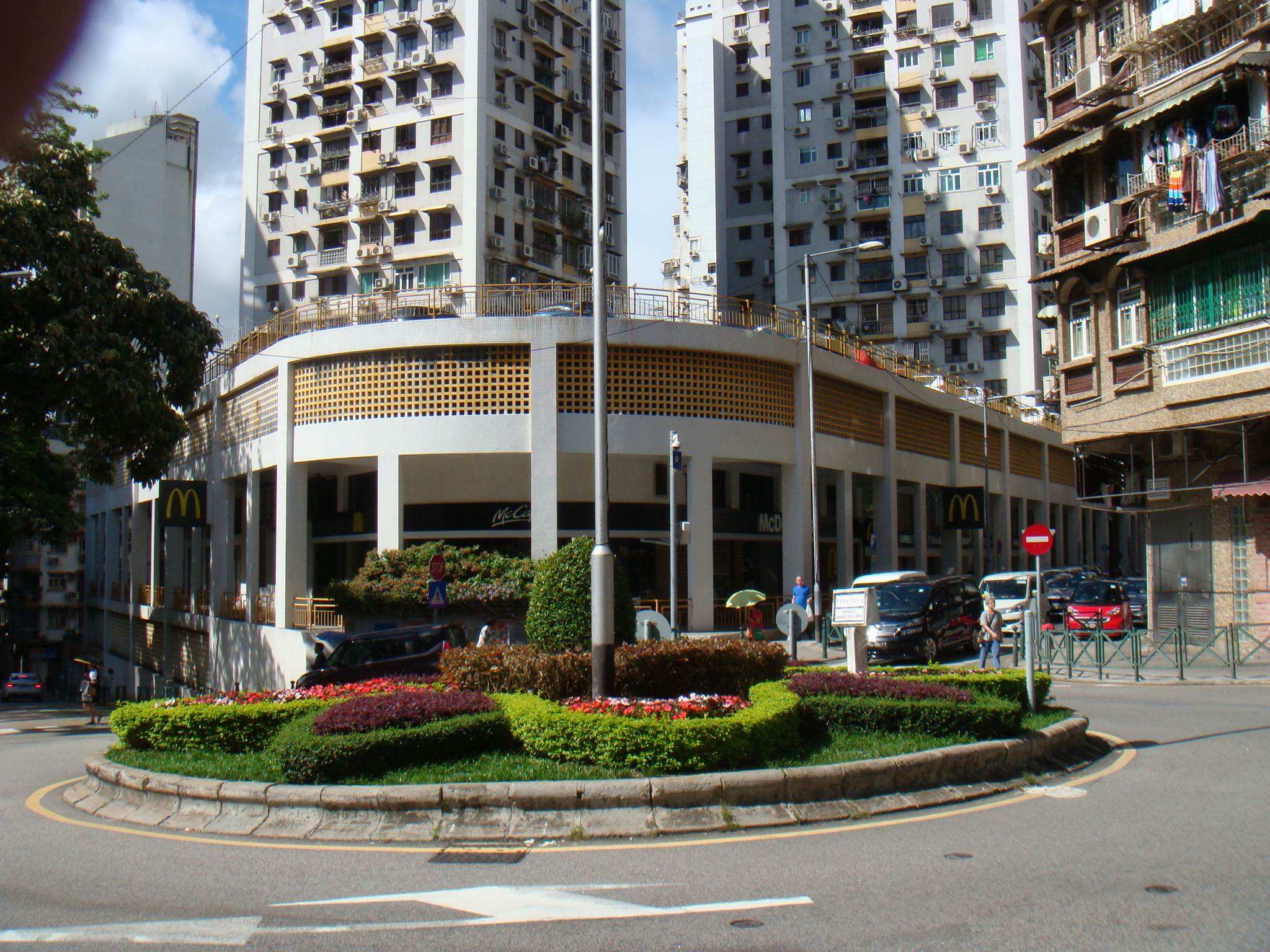 坂を上がりきると鏡湖病院前のロータリーでした。そこから新勝街を下っていくと聖アントニオ教会に到着。地図では、同慶茶荘は少し戻って、連勝街のマクドナルドの斜め前あたりなのですが、見当たりません。