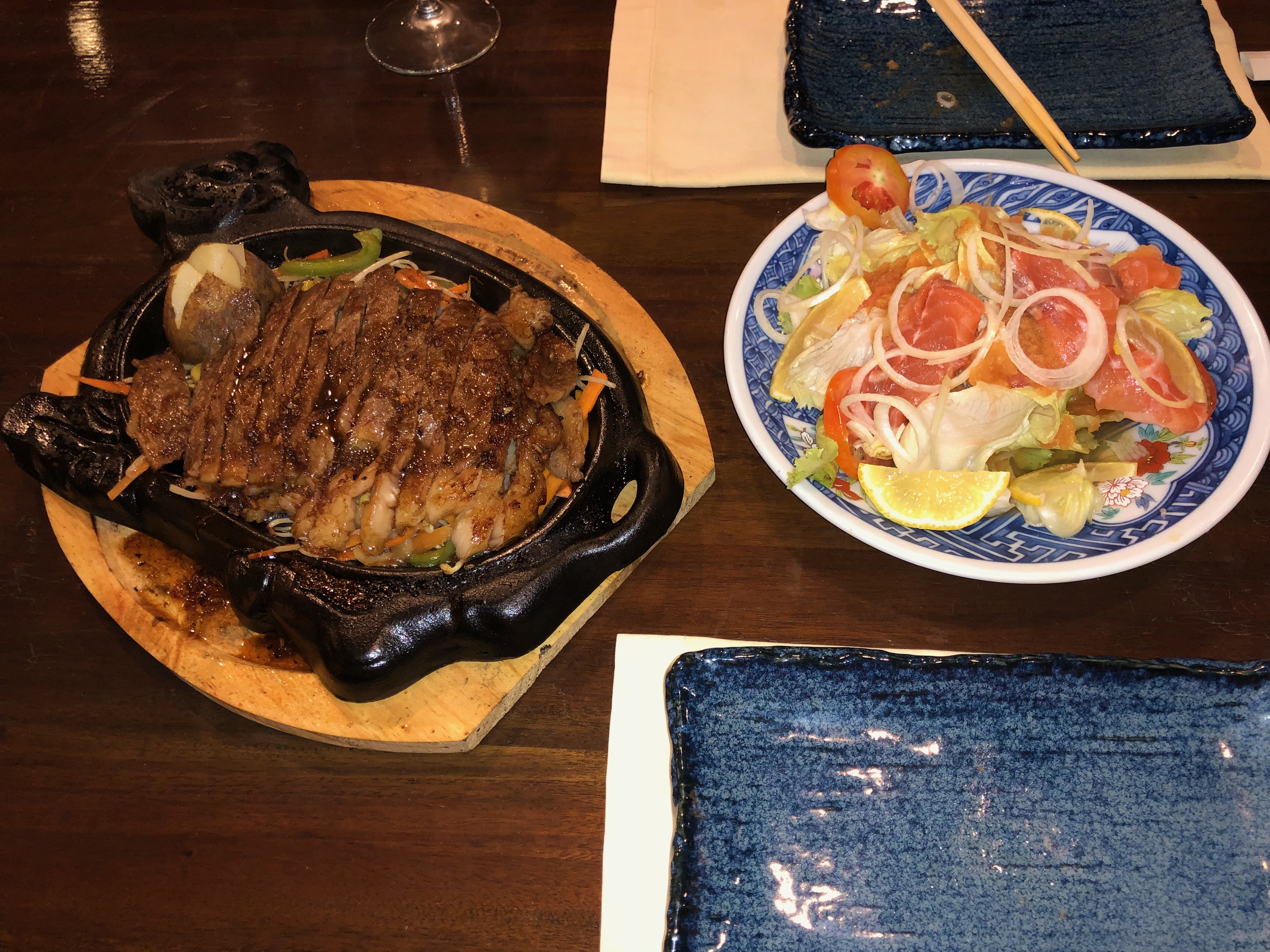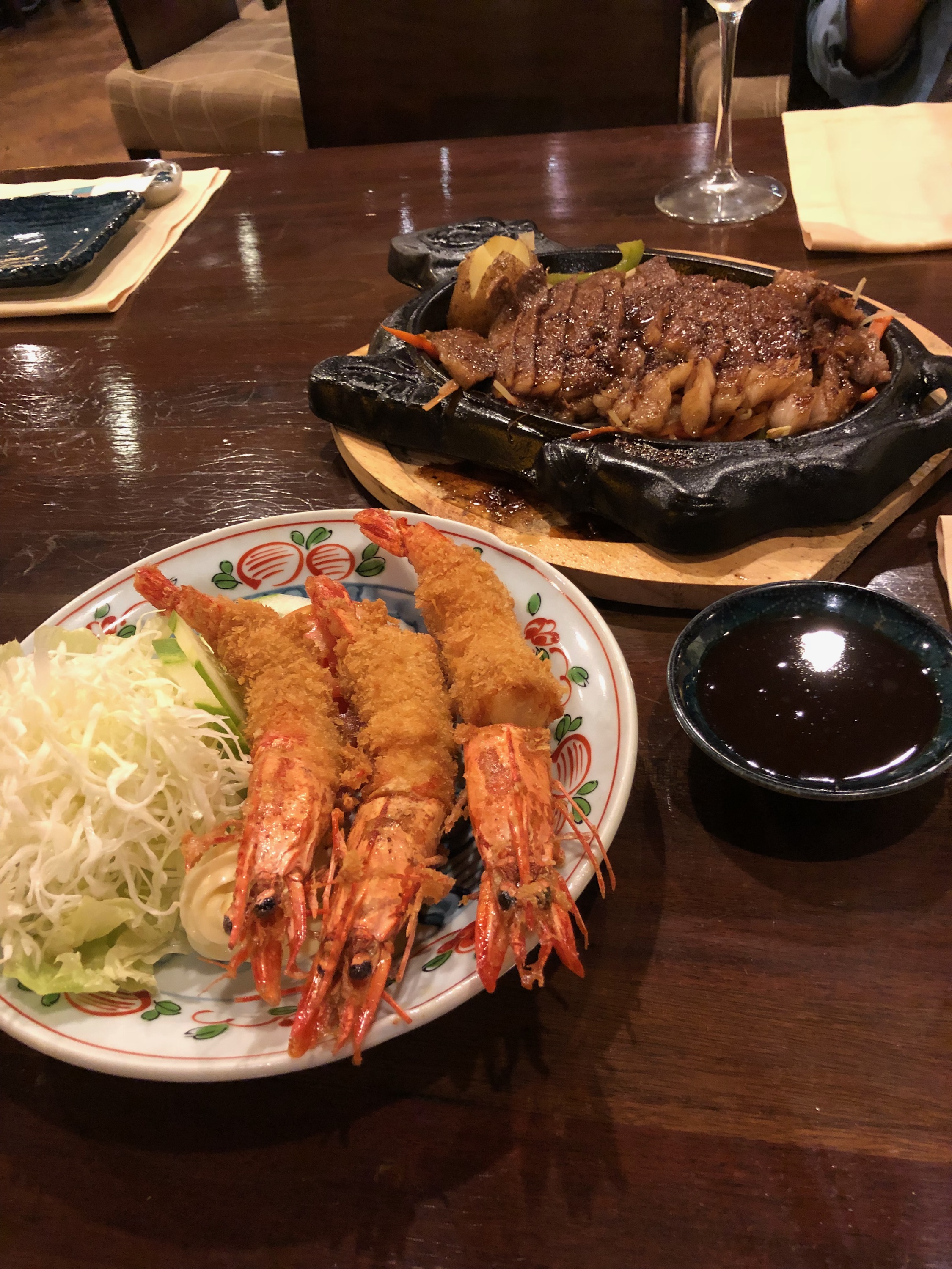 この日はステーキとエビフライが食べたいとなったことから、ホテルレストランの和