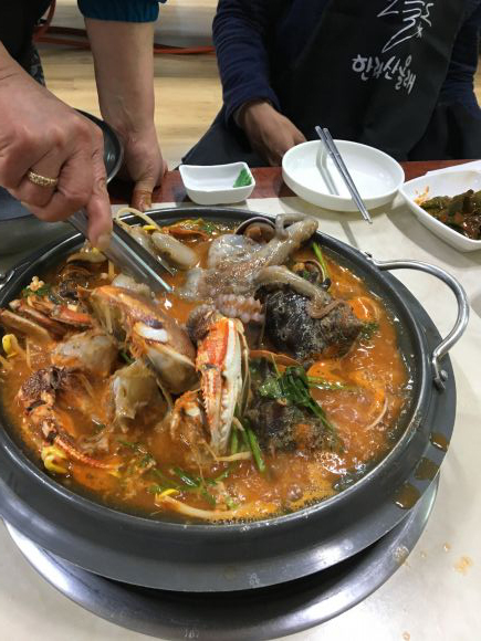 動くタコを、オモニがトングで押さえつけます。ちょっと可愛そう(・_・;