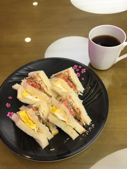 ビュッフェに大したものなく、メニューも、なかったのですが、試しにサンドイッチを頼むと、トースト用と思っていた食パンを、待って奥にさがり程なくサンドイッチが出て来ました。味はそこそこ美味しかったです。