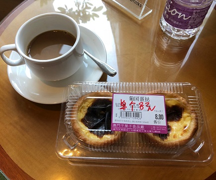 腹の調子はまだ悪いので朝食はホテル1Fのベーカリー(正確にはケーキショップの模様?)でエッグタルト(12$)とピーチタルト(30$)を購入。部屋でコーヒー飲みながら食します。これ美味しいです。油断すると毎日これで朝食済ませそうなくらい好みでした。