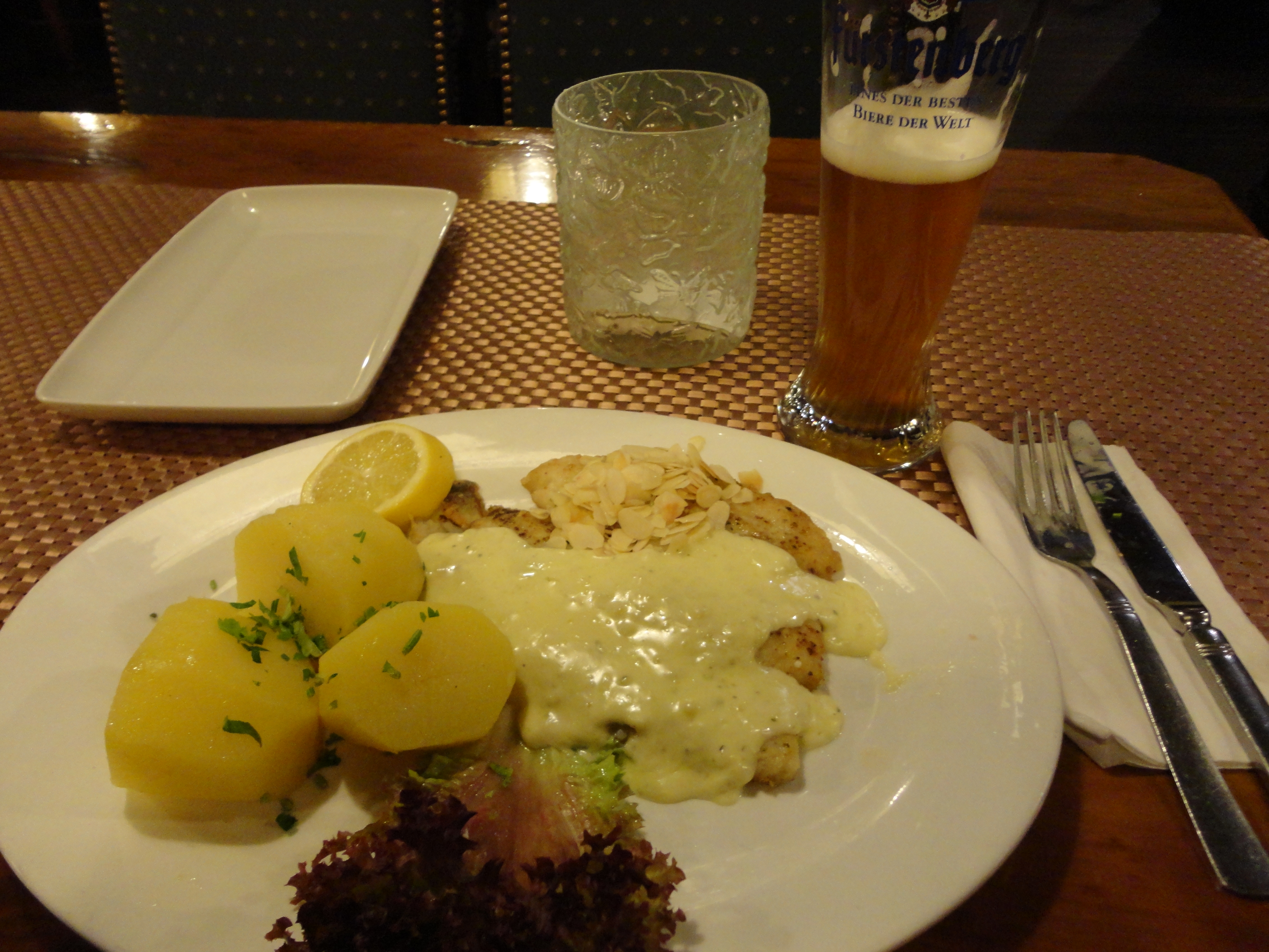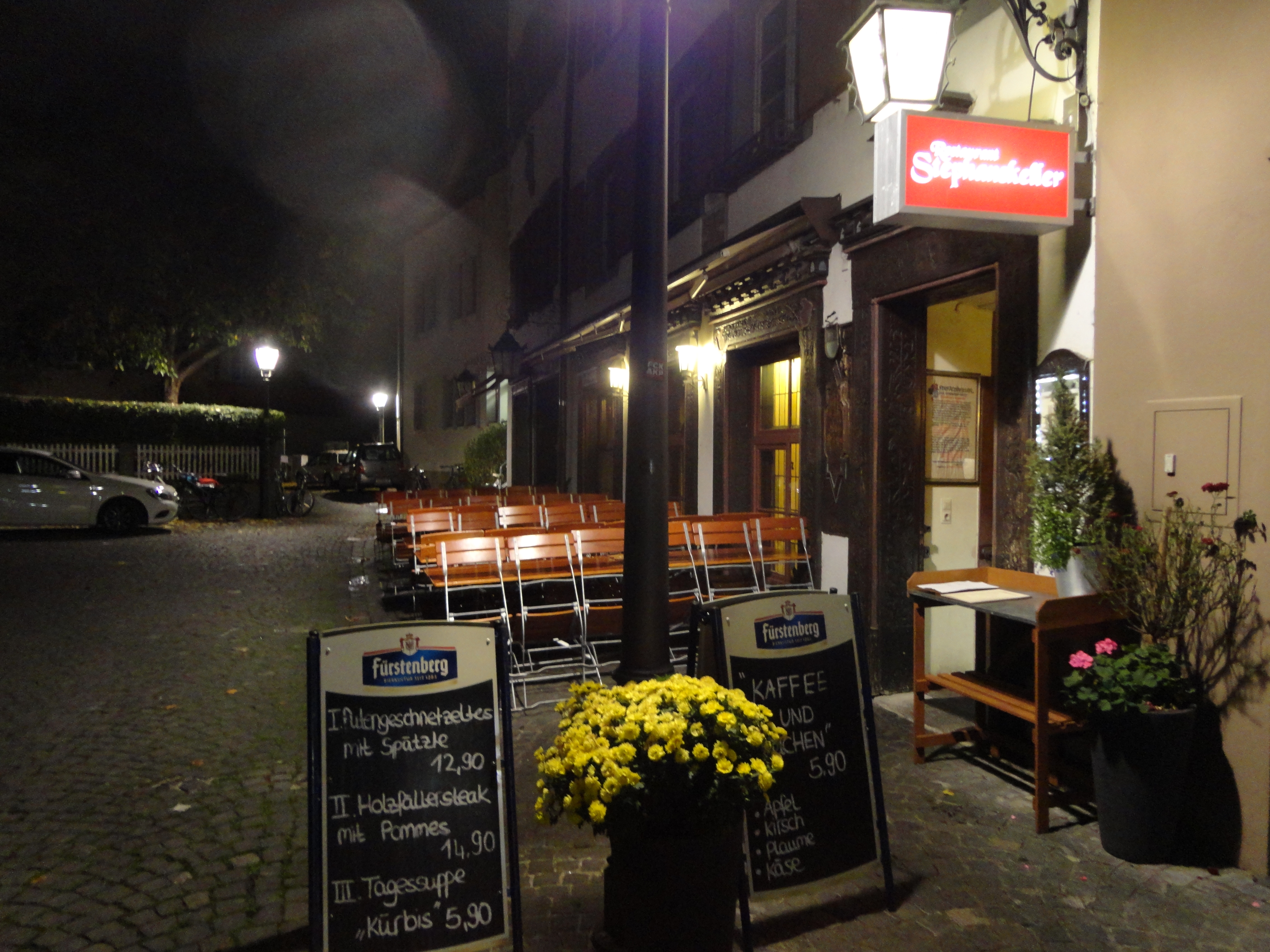 暗くなった旧市街を歩いてドイツらしいビール居酒屋を探すが、なかなか見つからない。ドイツの大概の都市では、勘で見つけることができるのだが、このコンスタンツは国際都市らしく、イタリア料理や中東料理の店も多く、ドイツ料理の店自体が少ないよう。いつまでも捜し歩いてもしょうがないので、ちょうど見つかった一軒に入ることにした。