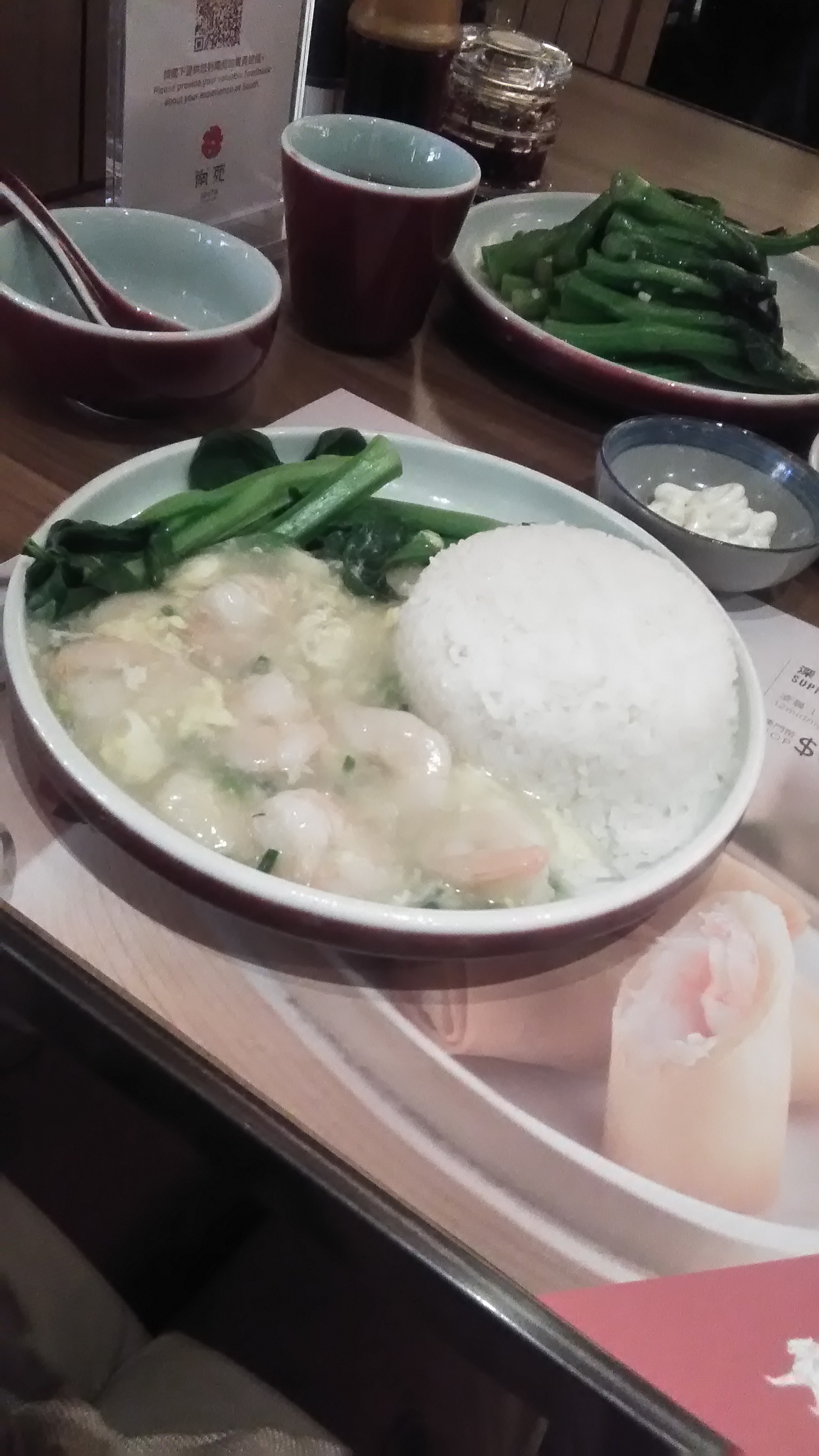 とりあえず人気だよ、というメニューを頼みます。エビギョーザや肉まん、何かを包んで揚げたもの