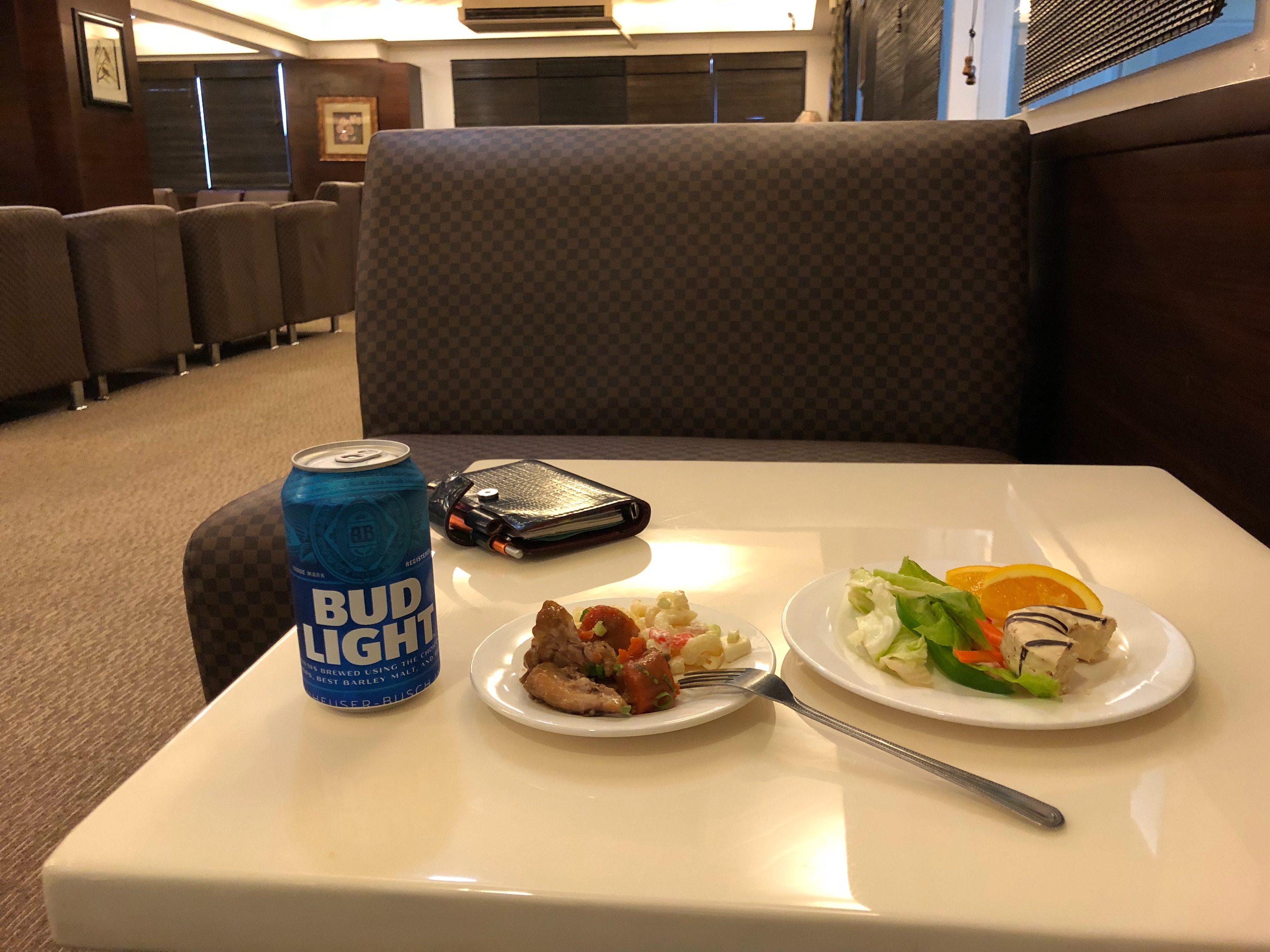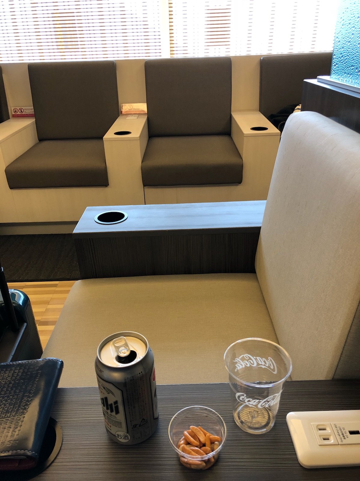 ラウンジで気付けのビールを呑みます( ̄ノ日 ̄)。