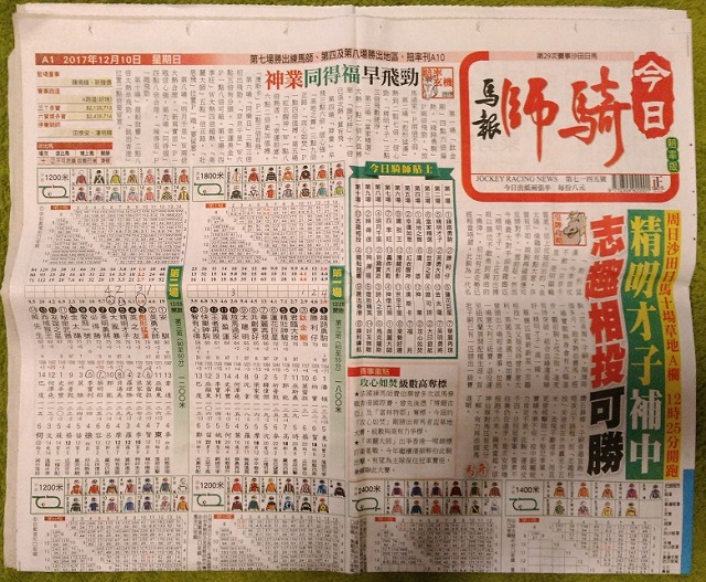 競馬新聞は当然ながら全部中国語で、馬名や騎手名はすべて漢字に置き換えられています。