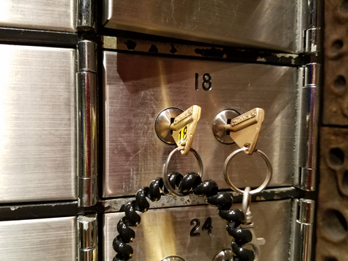 厳重な貴重品入れ。自分と従業員の2つの鍵がないと開かない。
