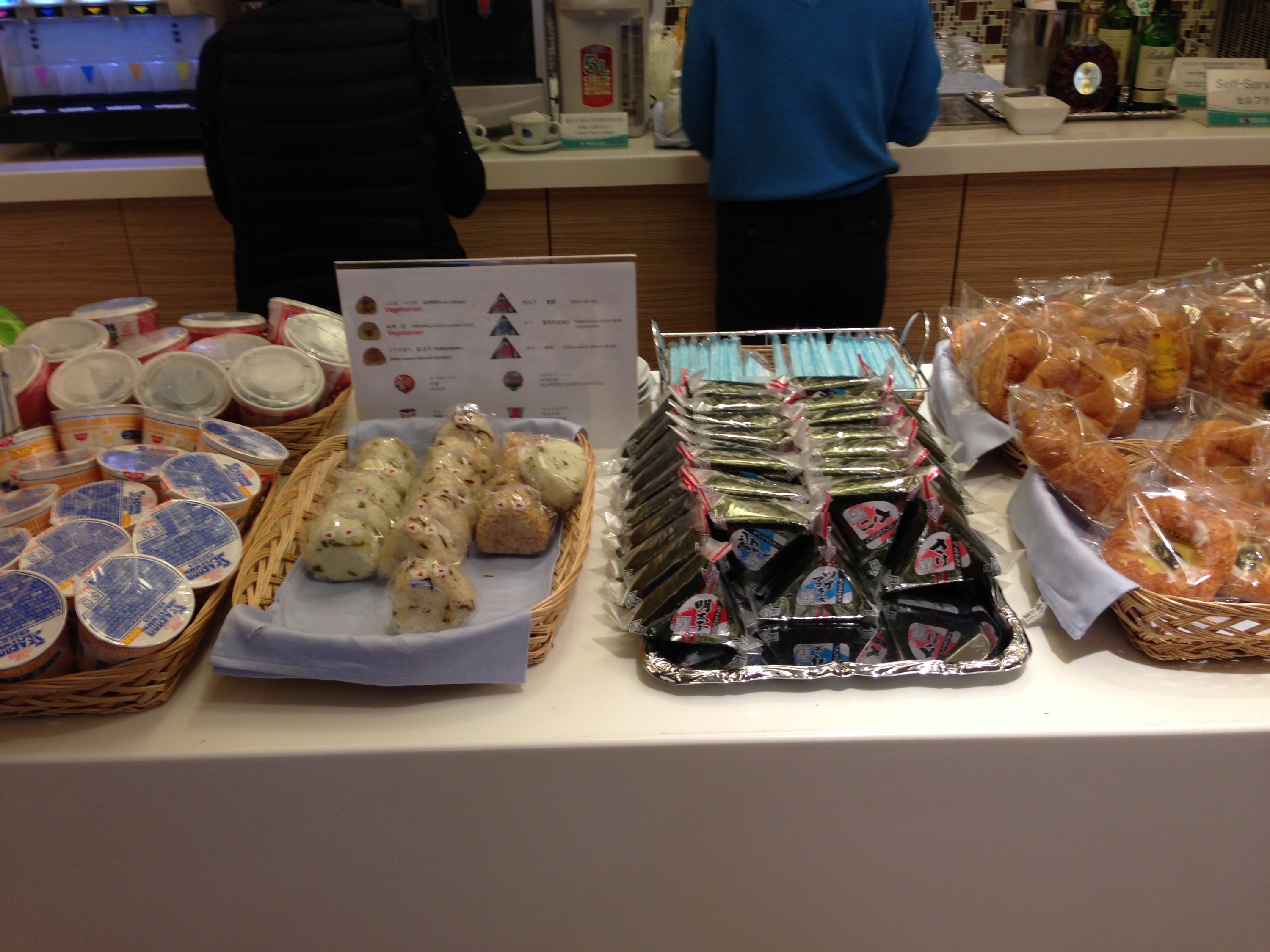 KALラウンジでは、軽食は地味です(おにぎり、カップ麺、スナック等)。