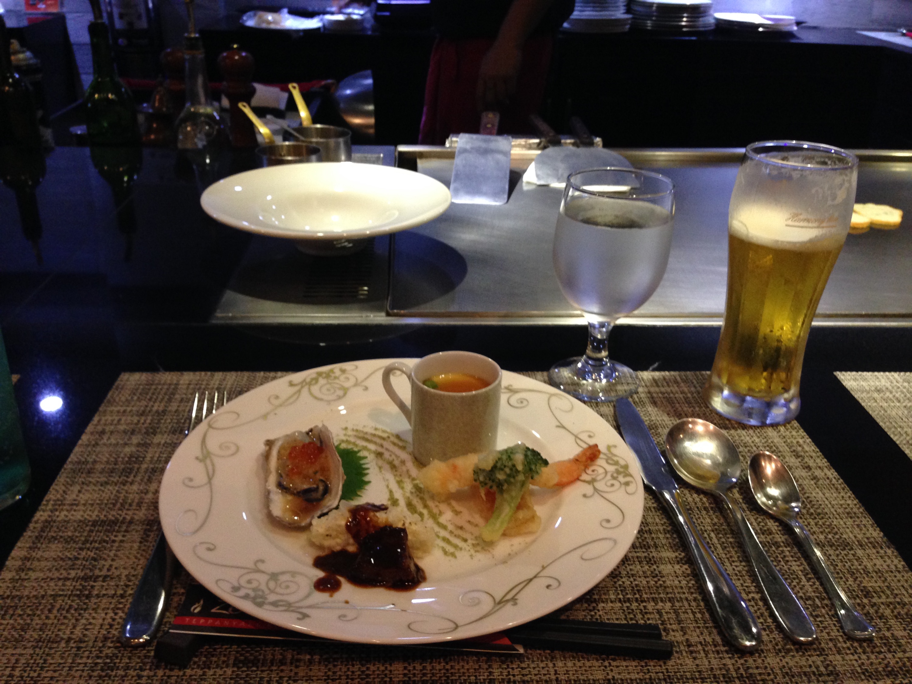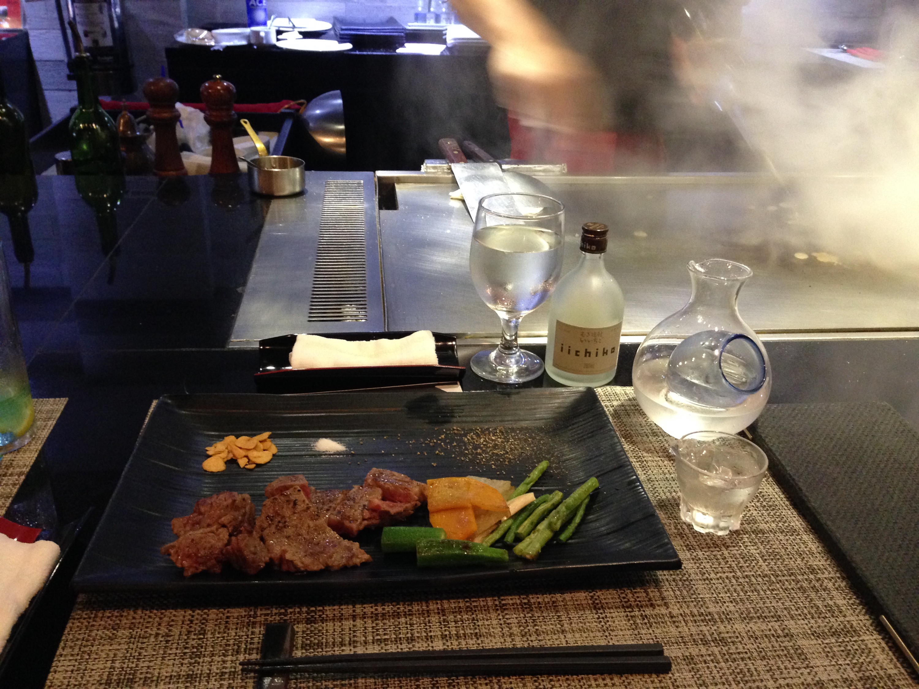 初日は夕方着なので、軽めにBJをしてガラパンのステーキ店「禅」で立ち上がる炎に包まれた柔らかい牛肉をカウンター越しにいただきます。
