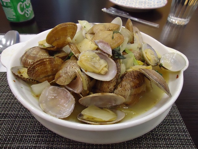 富仕葡式美食でチキンライスとアサリのソテーをいただきます。