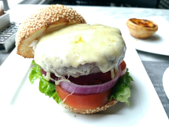 ハンドメイドバーガーとエッグタルト2個と、前回頼んで感動した「ローズカフェ」(シナモンコーヒー)をオーダー。