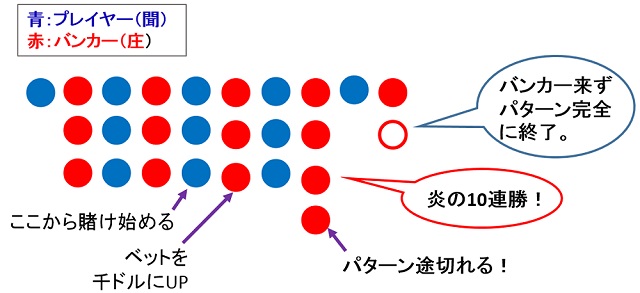 あと一度勝つと、1万ドル超えというところでツラ目が途切れます。