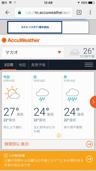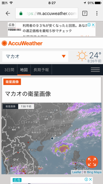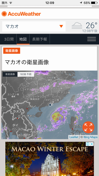 マカオの気象状況を確認、近くに低気圧あるようだけど