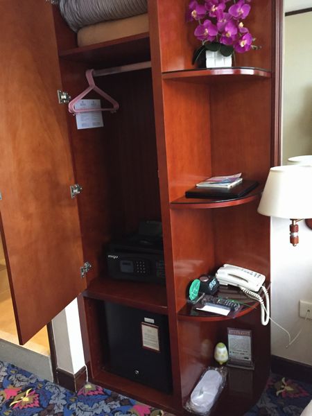 ベッドシーツやデスクは清潔感あり、ルーム金庫もあって好印象。