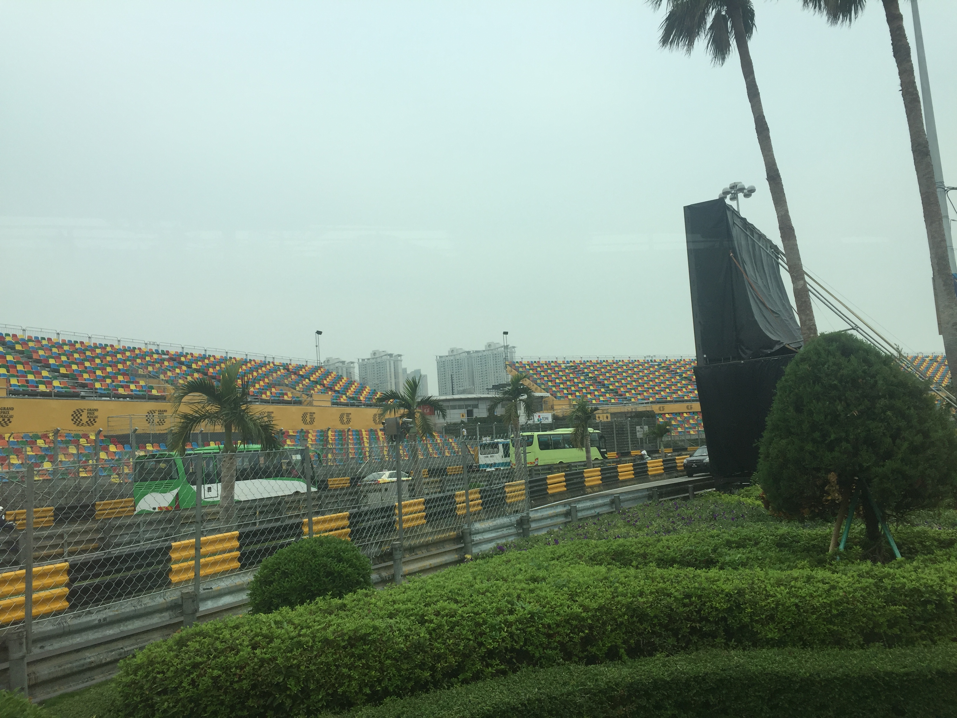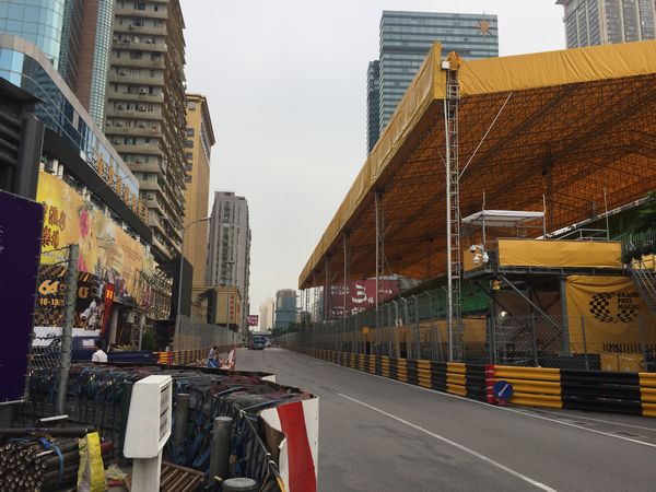 今のマカオの街並みは、マカオグランプリに向けて観戦席が設置されたり準備で大忙しな感じ。